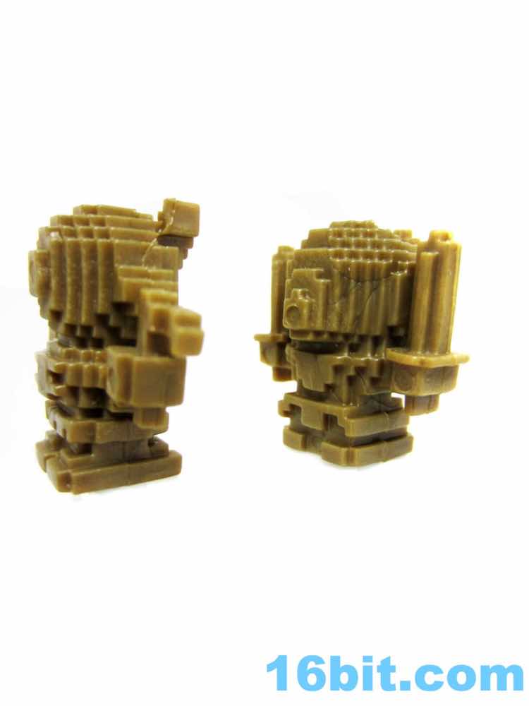 The detail is pretty amazing if you think about it. The classic "bad graphics" of the 1980s got translated to 3-D with a Glyos socket on the bottom of each figure, allowing them to serve as caps on canes or heads on a figure if that's how you want to go. It's pretty amazing to see the Glyos system find its way in stores through the retail backdoor, with a fairly high-quality figure under the guise of what my parents would generally have described as cheap junk. (Which, in the 1980s, was probably accurate.) Today we've got fairly durable little figures that are cute, easily lost, and look nice as a set on top of an old monitor or shelf.