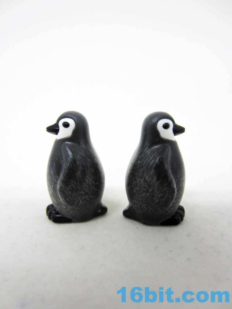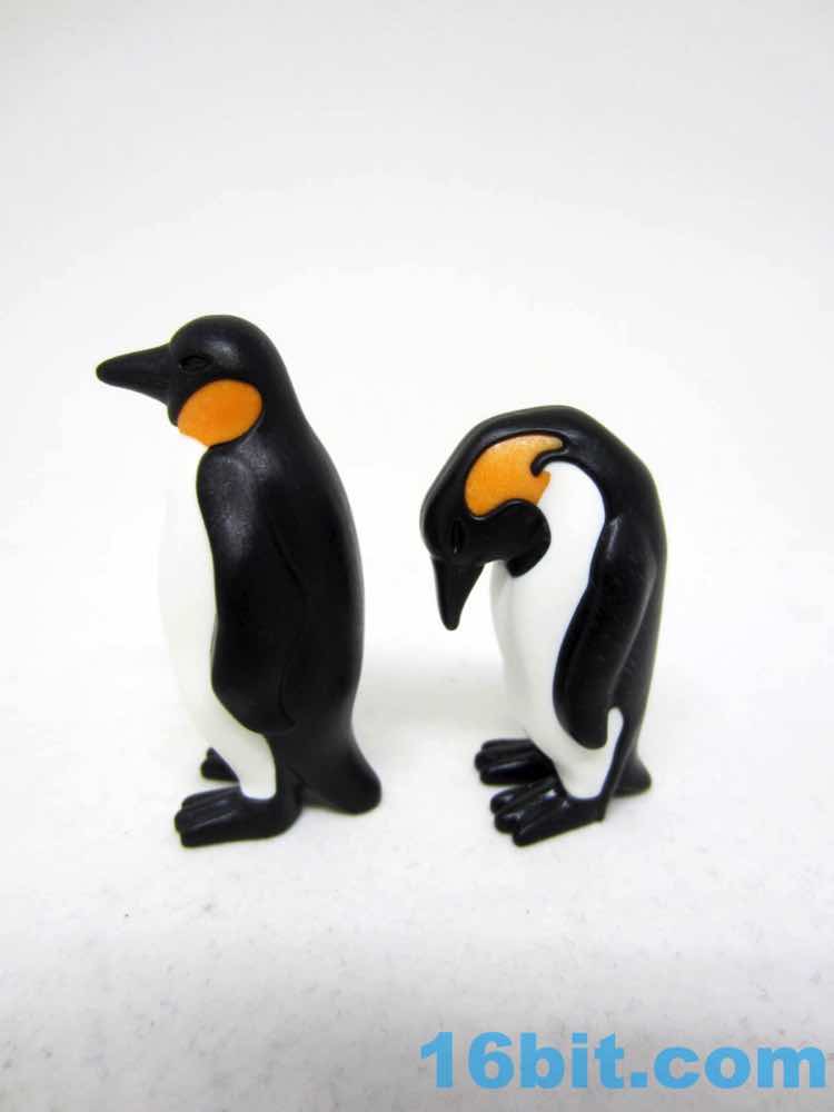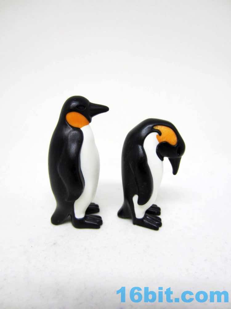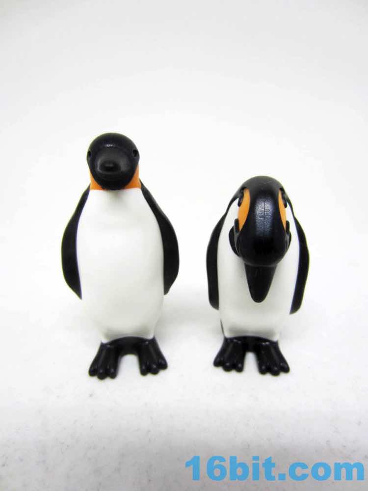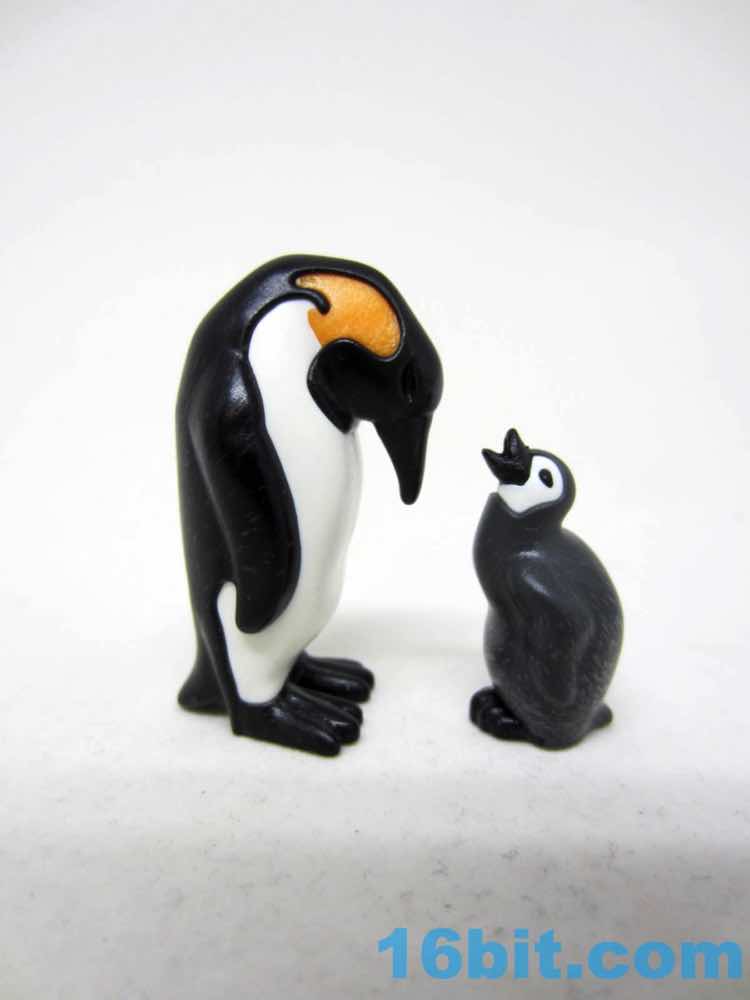 Sometimes Playmobil will mold a figure in multiple colors of plastic, and that's how the adult penguins seem to be here A mostly black figure has a white belly and an orange neck squeezed in, giving you a sturdy, durable figure with no articulation and, for some reason, a hole in its bottom. One is standing looking ahead, and the other is looking at its feet - or baby, or egg, or food - and was made using the same techniques. These ones are slightly taller and come in more realistic proportions than the originals, which had fins out and were generally smoother items based on designs that are more in line with the line's original ethos - kid drawings. We've come around the other side and now most new non-human things are looking increasingly realistic, but obviously not perfect representations of the actual thing in question.
