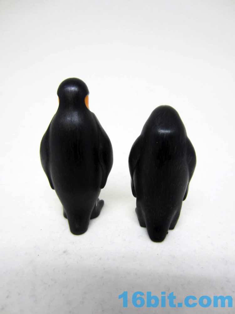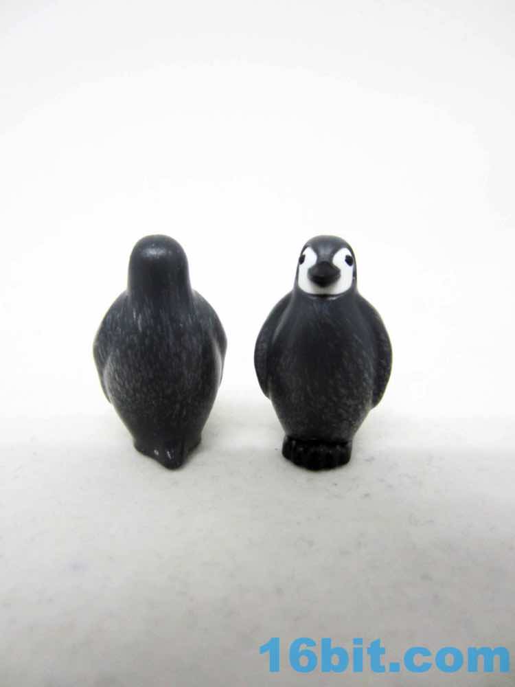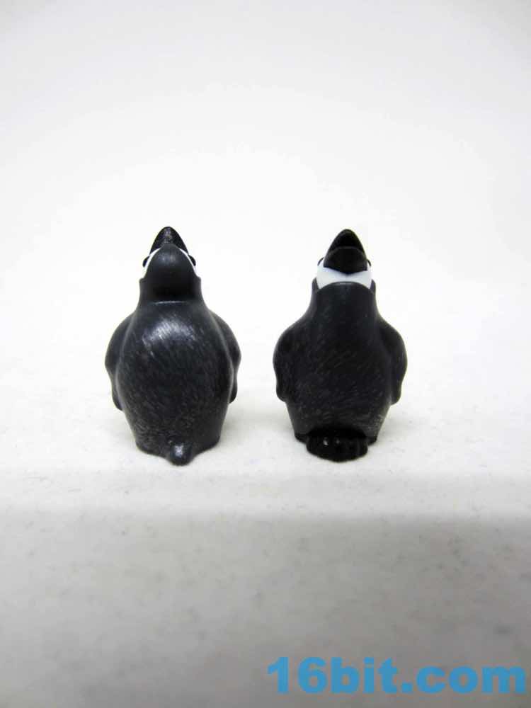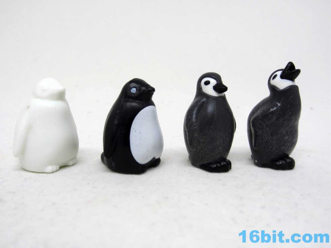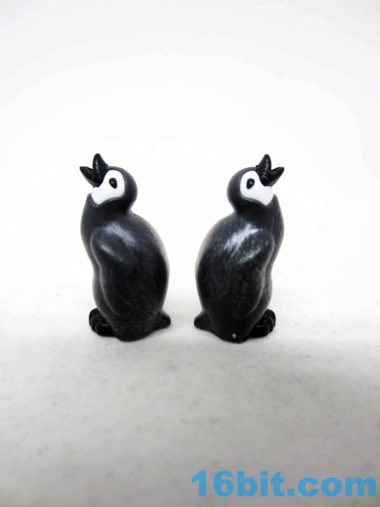 The babies are similarly tiny, barely larger than the original oddly-shaped blobs of feathers. These ones look less melty and have more personality - the original one just sat there, and one of the styles matches the original pose. There's also a "feed me!" pose, with a slightly open mouth that would almost imply you could put a fish in there were there a small peg jutting out of its mouth. (No such piece was included.) It seems to be white, grey, and black plastic pieces smashed together to make a fairly durable little penguin. There are no moving parts.