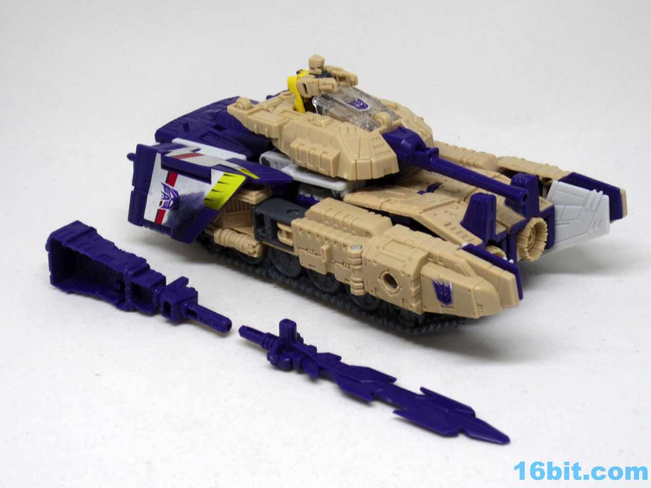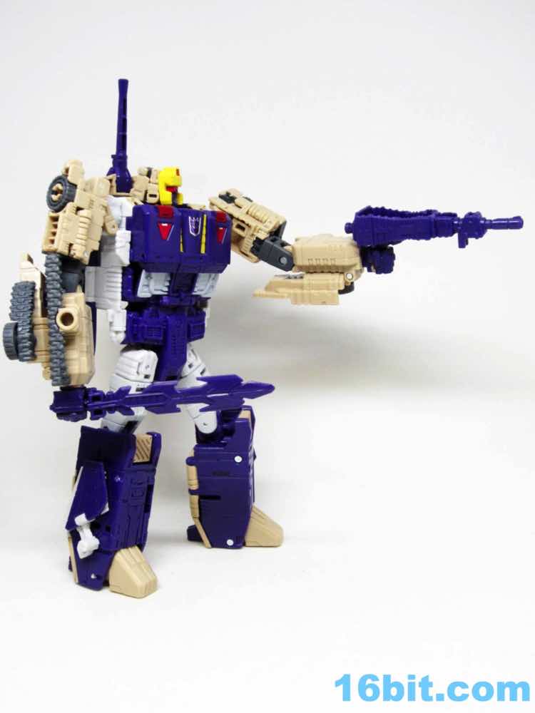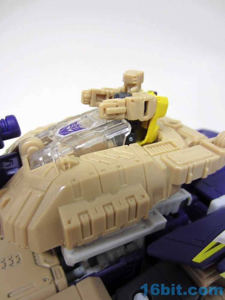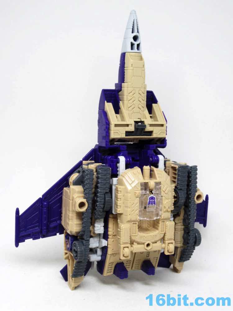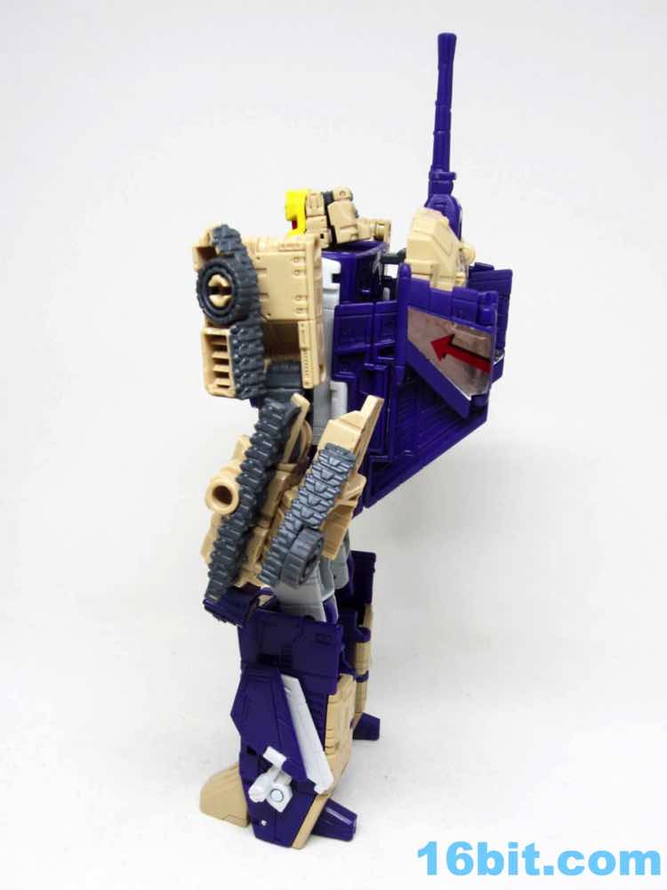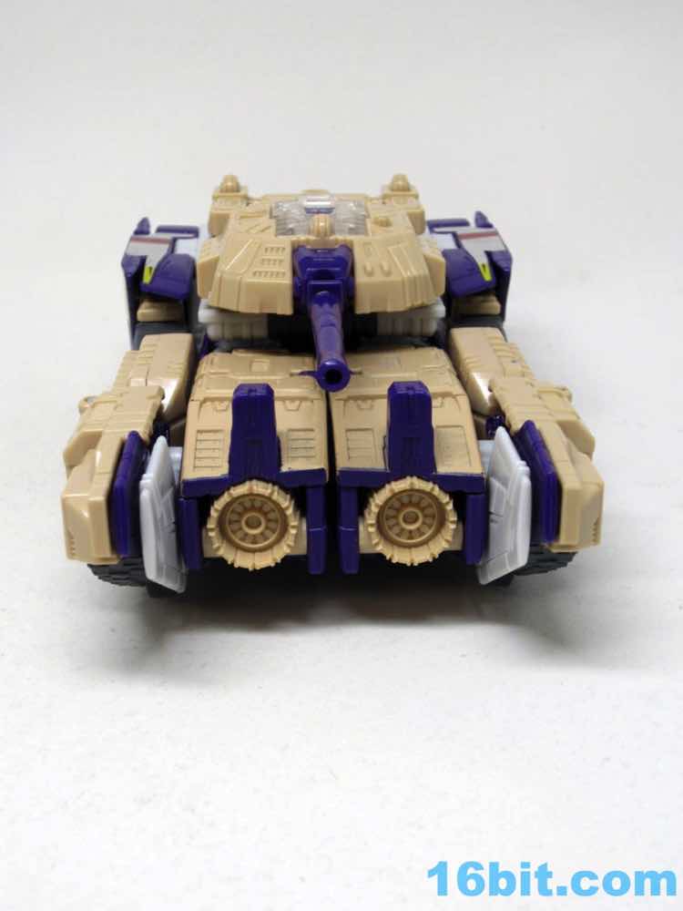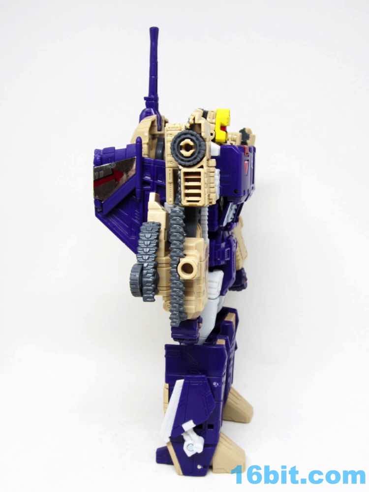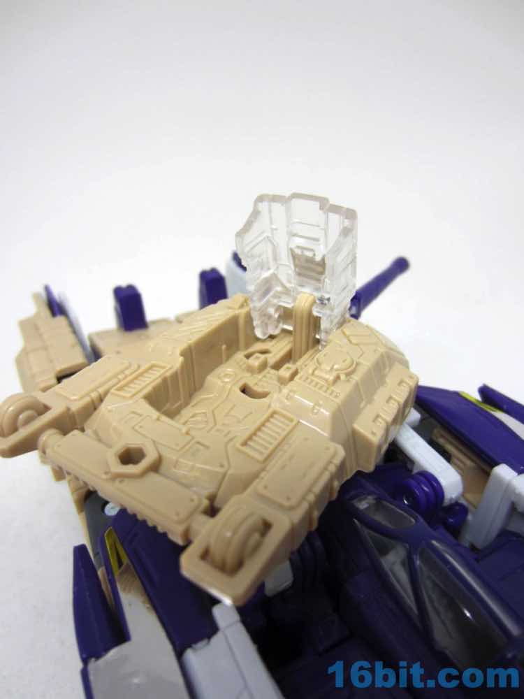 The tank mode is a weird one, because you have most of a tank with some jet wings wrapped around the back. Joy may be found in sculpted tank treads with little (mostly useless) wheels underneath, but the turret spins and a figure can sit inside. You can also position the gun on the tank in a few interesting ways, which was a departure from Megatron's weapons and an appreciated alteration from where I sit. Another functionality issue was (at least on mine) the figure's shins sort of scrape the ground when in tank mode. Either this means I can't do it right, or there are form fit issues. Take your pick, you probably won't be wrong.