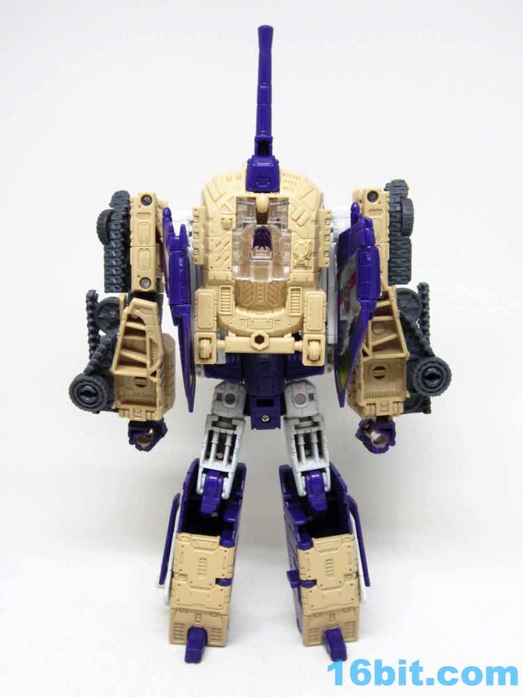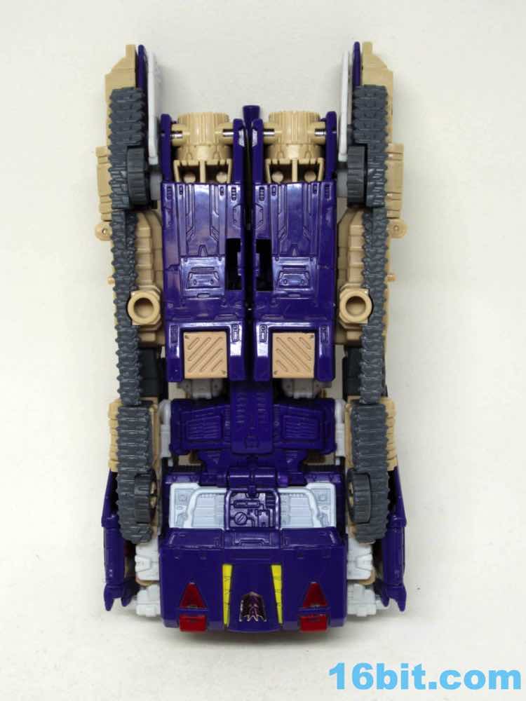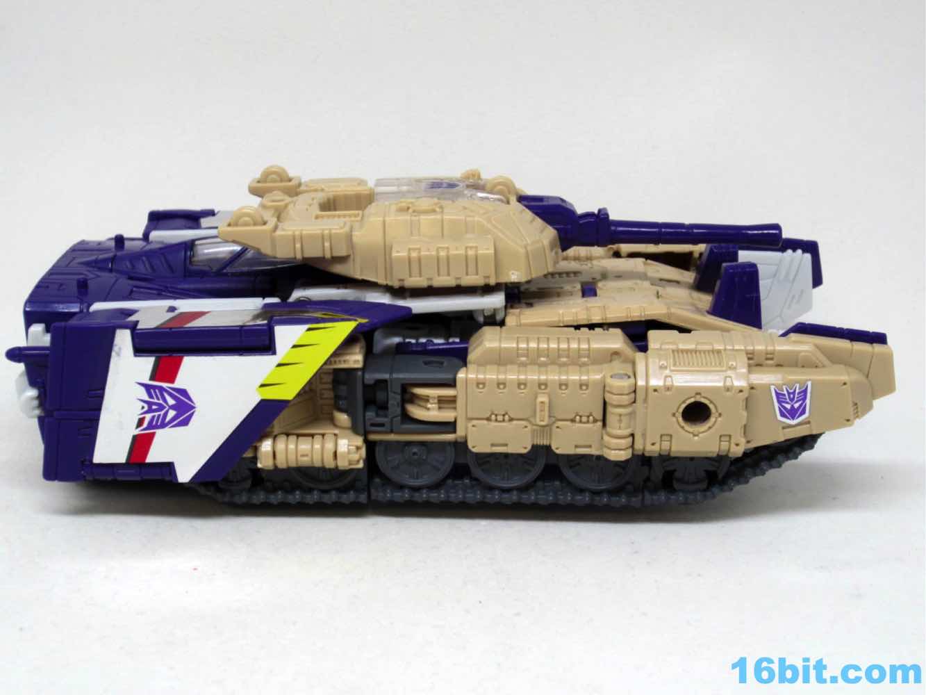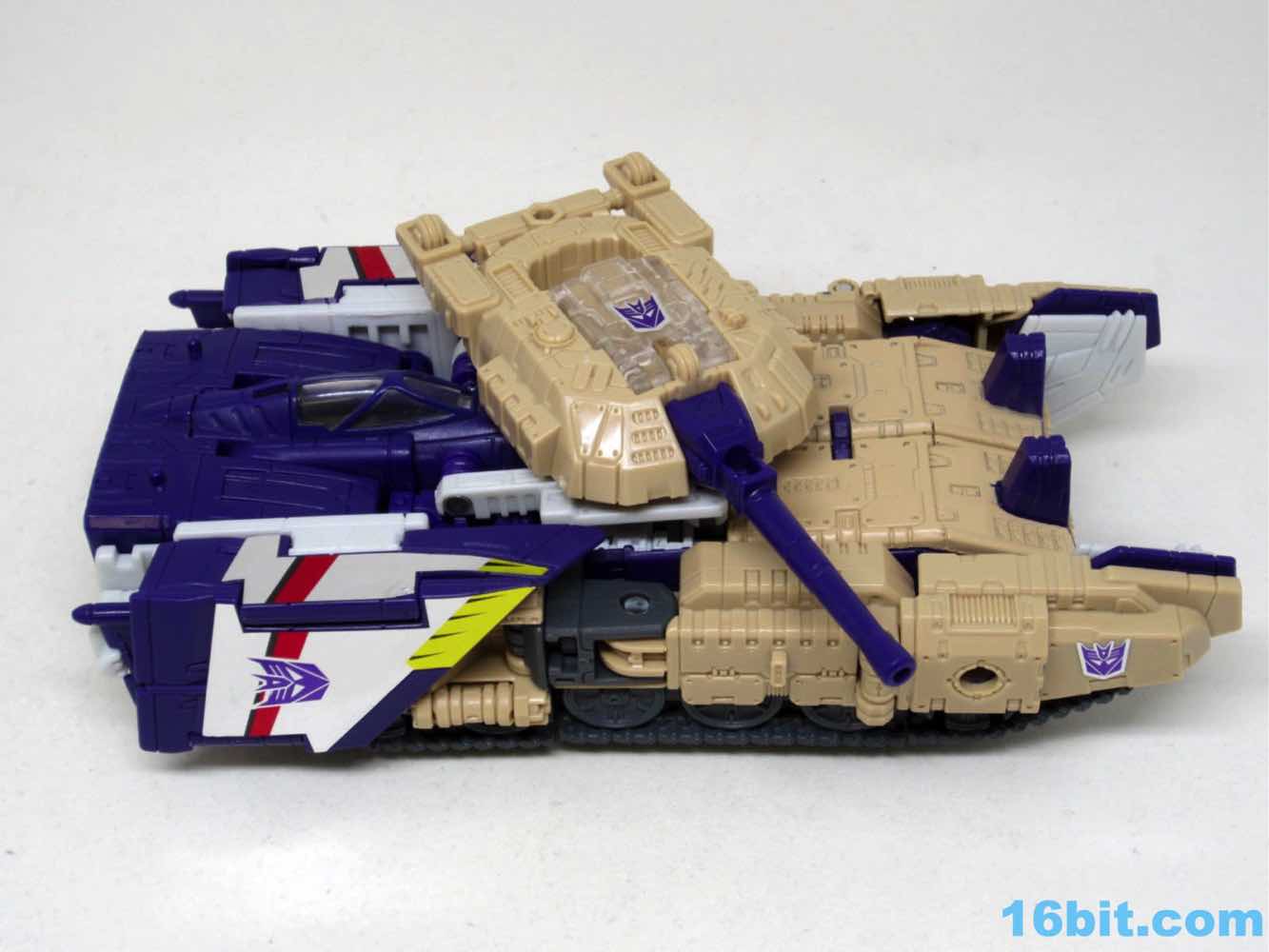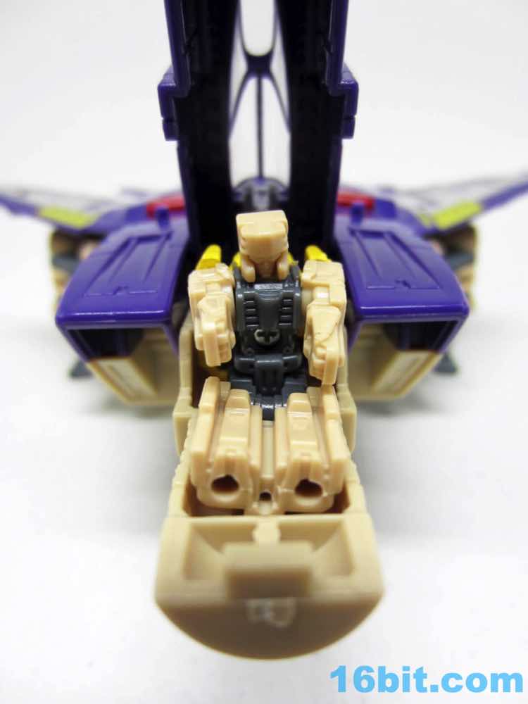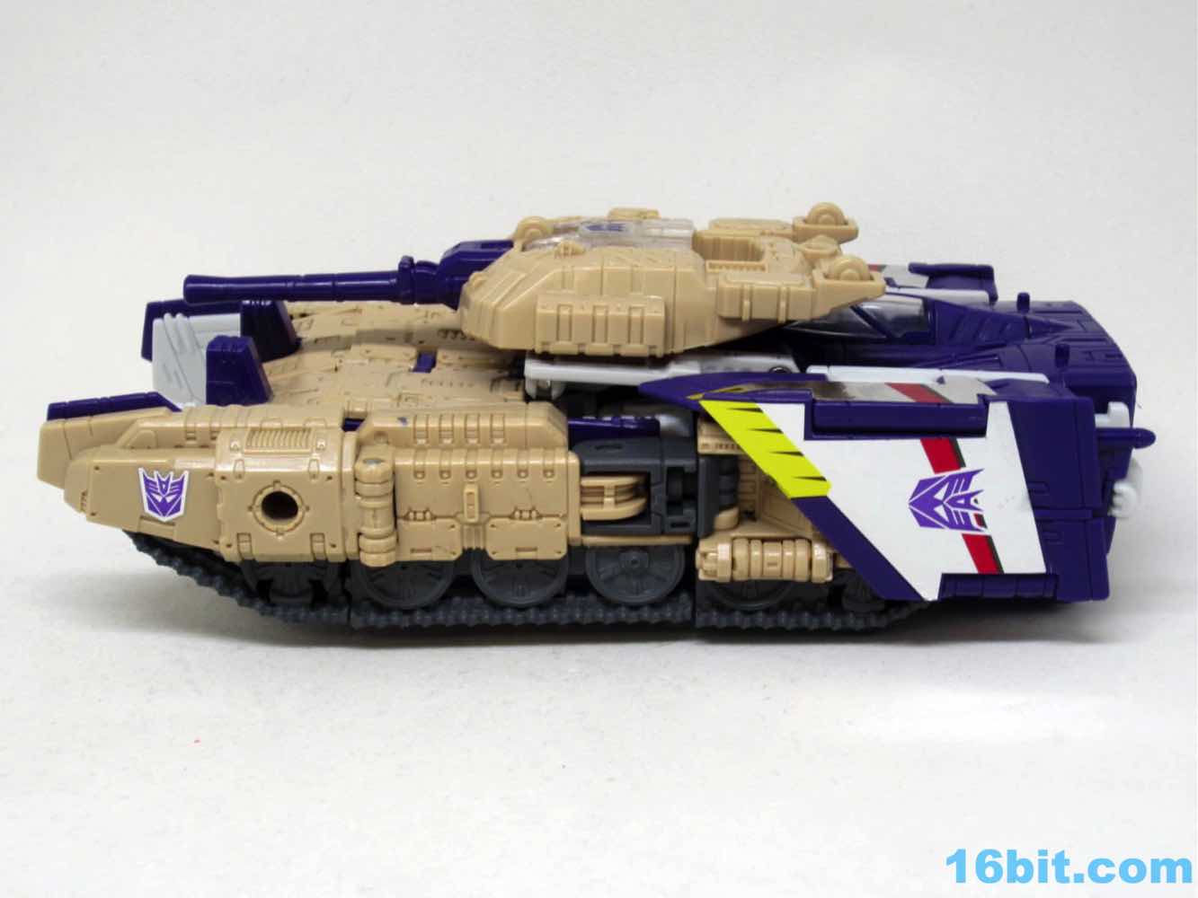 The tank mode is a weird one, because you have most of a tank with some jet wings wrapped around the back. Joy may be found in sculpted tank treads with little (mostly useless) wheels underneath, but the turret spins and a figure can sit inside. You can also position the gun on the tank in a few interesting ways, which was a departure from Megatron's weapons and an appreciated alteration from where I sit. Another functionality issue was (at least on mine) the figure's shins sort of scrape the ground when in tank mode. Either this means I can't do it right, or there are form fit issues. Take your pick, you probably won't be wrong.