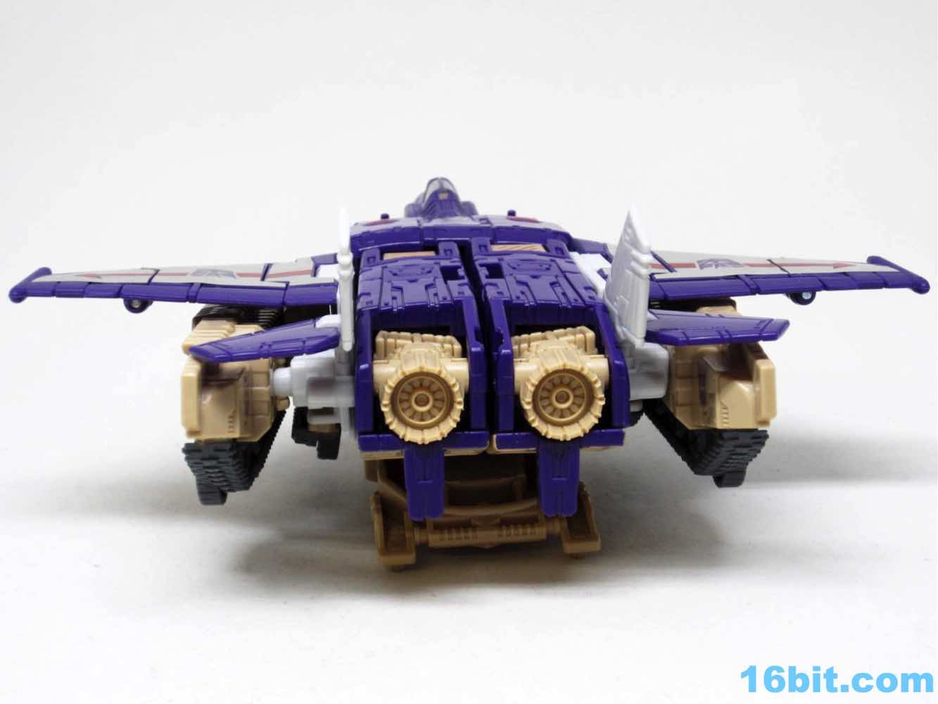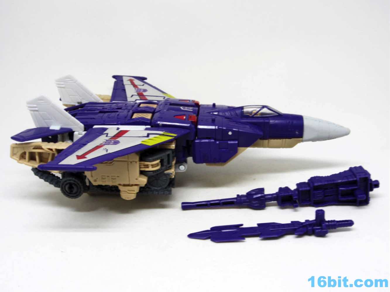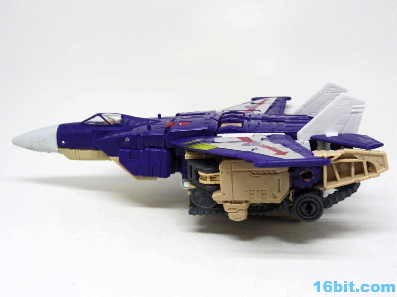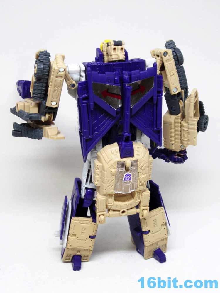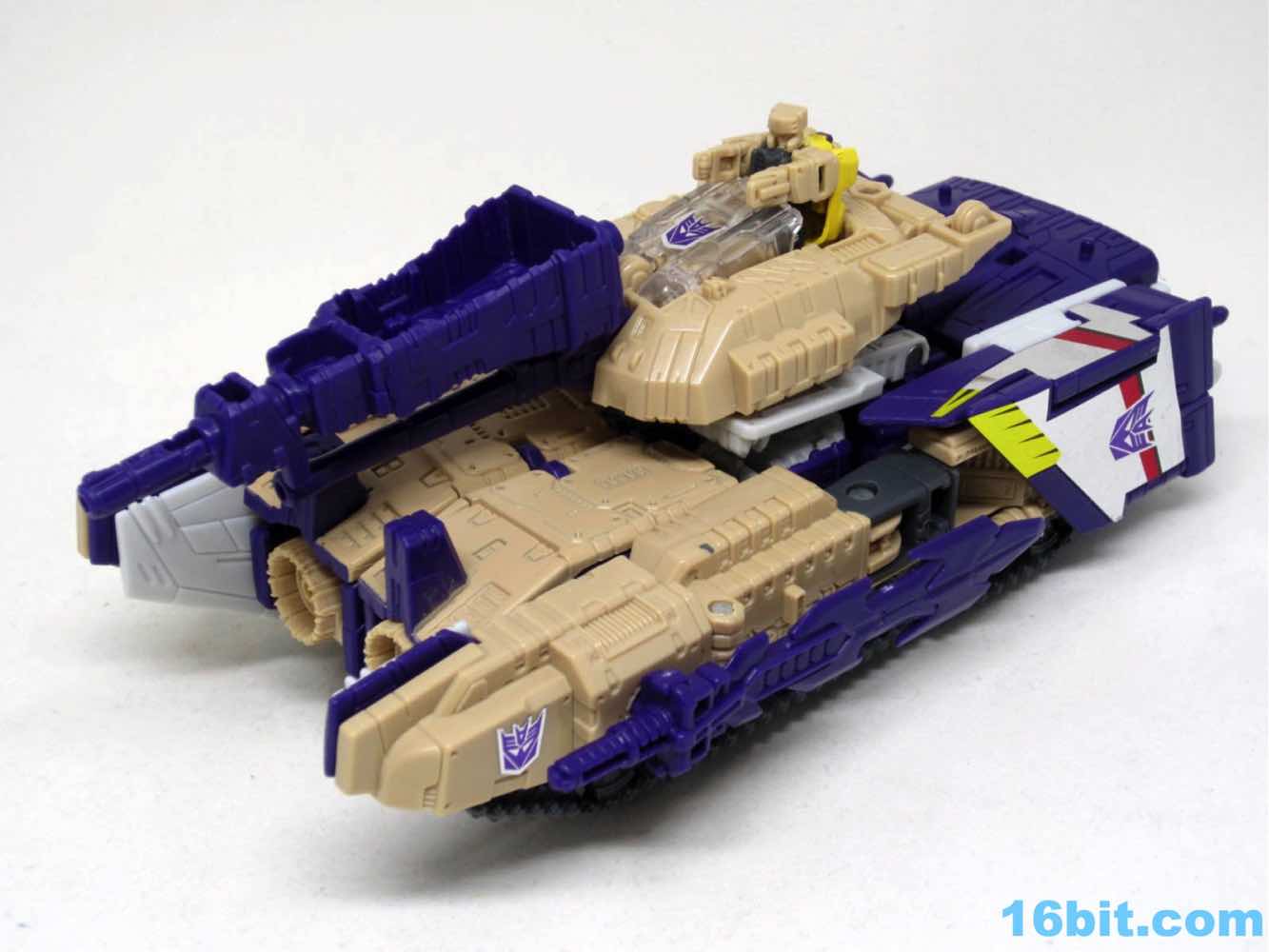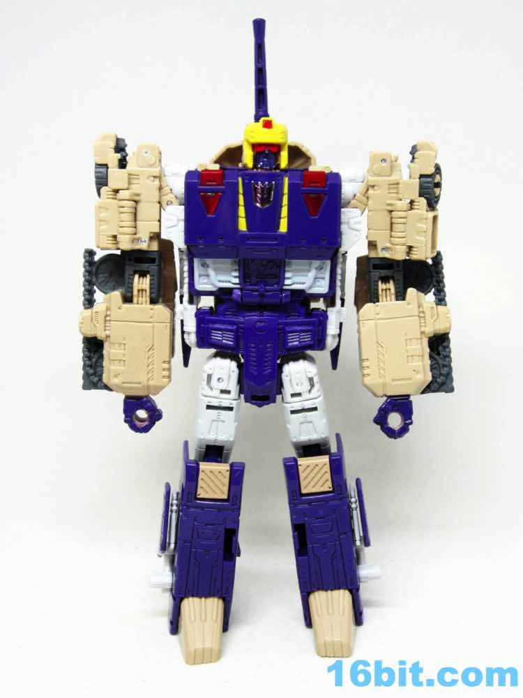 The tank mode is a weird one, because you have most of a tank with some jet wings wrapped around the back. Joy may be found in sculpted tank treads with little (mostly useless) wheels underneath, but the turret spins and a figure can sit inside. You can also position the gun on the tank in a few interesting ways, which was a departure from Megatron's weapons and an appreciated alteration from where I sit. Another functionality issue was (at least on mine) the figure's shins sort of scrape the ground when in tank mode. Either this means I can't do it right, or there are form fit issues. Take your pick, you probably won't be wrong.