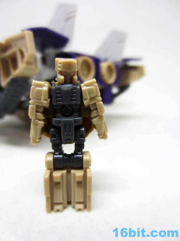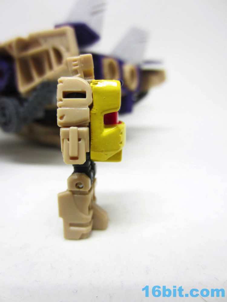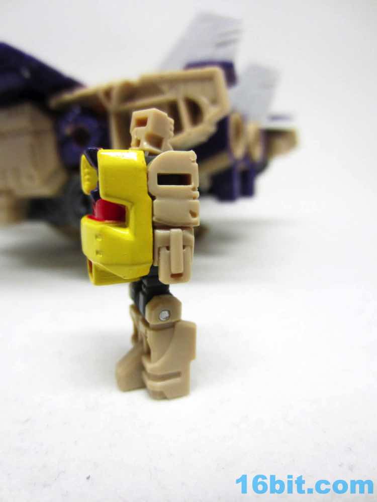 This 1.5-inch robot Titan Master Hazard is Doomshot with a new face backpack. It looks sort of like a tiny Blitzwing with no paint and five points of articulation. What I love is that Hasbro did a nicer job integrating places for him to sit in the vehicle modes - the jet cockpit has a good seat, and the tank has a perfectly acceptable position on the turret. The figure can stand or sit, or serve as a head to the larger Blitzwing robot mode. You get what you want here.