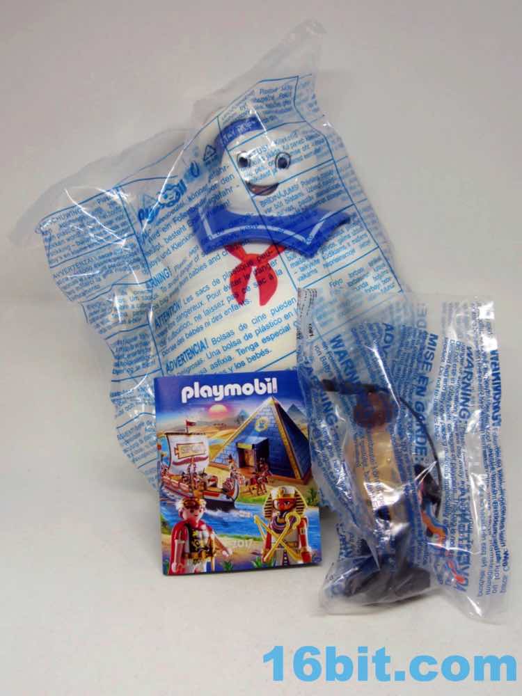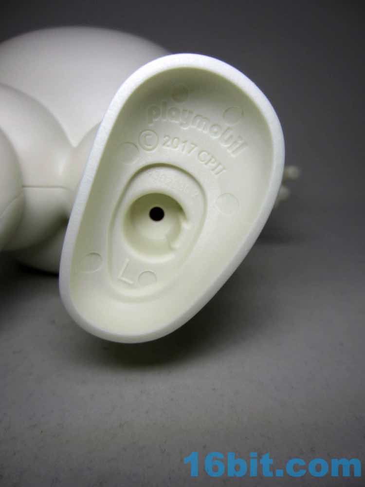 The reason you're buying this figure is for Mr. Stay Puft, which is a durable specimen. The plastic is hard, much like many of the dinosaurs, whales, or other larger creatures. He has partially hollow feed so he can step on things, but the design is strange from a manufacturing perspective. The bib is a separate piece with a bit of a gap over his shoulders. The red tassle on his hat and ribbon are printed on, rather than being raised or molded like on my other toys of this character. It's a departure, to say the least. His mouth is open and happy, with a painted red interior. The eyes are bright and wide, with a clear "STAY PUFT" printed on his hat. He's rotund and round, with a stiff neck and the white plastic sporting the typical fibrous Playmobil texture. If you get in close and squint, the texture you've seen on other hard, seemingly immortal pieces of plastic is here rather than a uniform color. There are little variations in color, and it works. It works nicely.