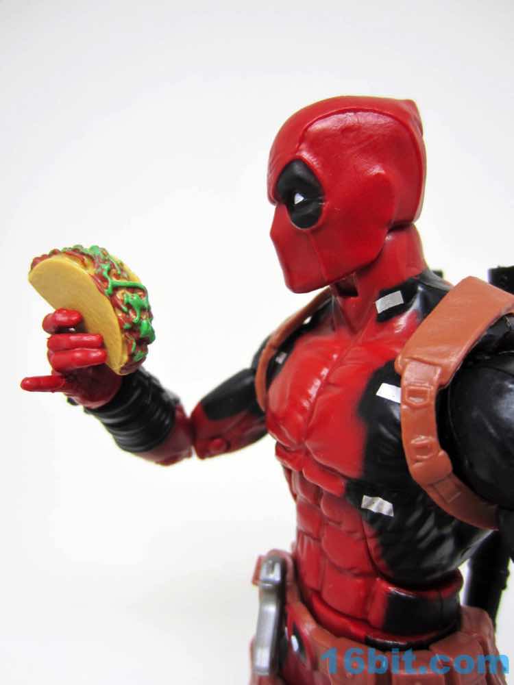 The 6-inch scale action figure is armed to the teeth. His swords fit in sheaths in his back, his pistols on his belt or hip. I was surprised the dagger doesn't have a storage spot, also surprised the figure has a hole in his back for some sort of stand or backpack (not included). His bazooka has a removable (but not launching) boxing glove, and his taco is a taco. There's also a machine gun and another rifle of some sort. I don't know guns. For years fans complain nobody ever gives an action figure enough accessories, so it was nice to see that Hasbro heard fans loud and clear and loaded Deadpool up. If this doesn't do it for you, another Deadpool is planned next year.