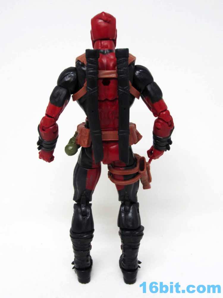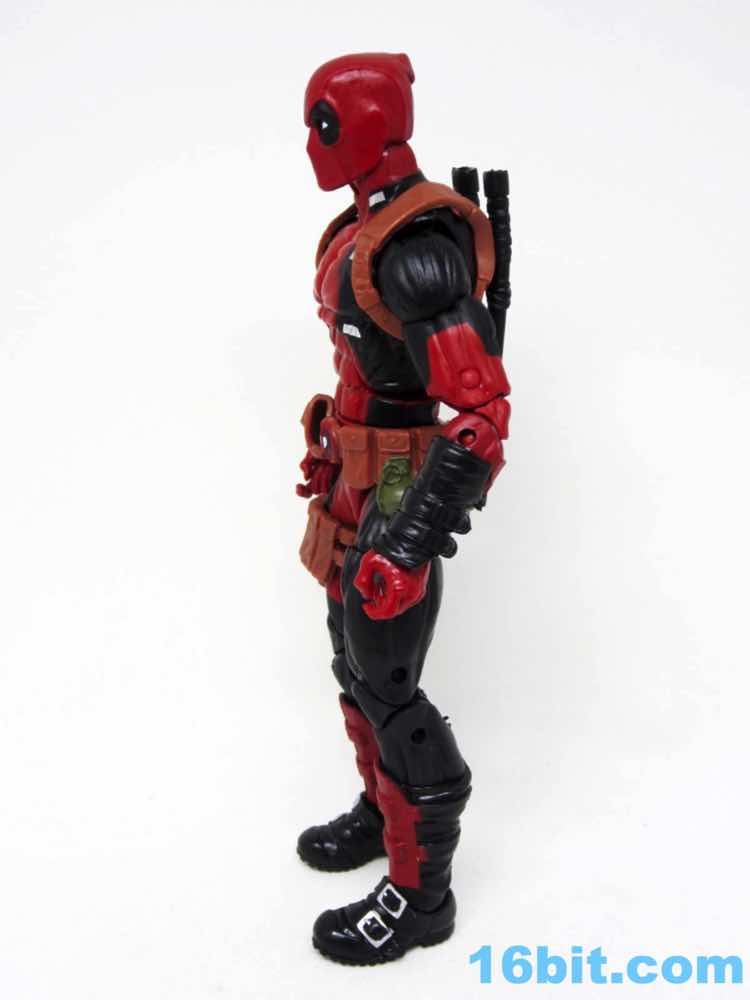 Articulation is on par with the norm for Marvel Legends, which is excellent overall. We're at a stage where a figure armed to the teeth with tons of gear, an alternate head, and 30 points of articulation is now de rigueur. To think, 20 years ago a good figure had maybe 12 joints on it - most of the popular Kenner figures had 5 or 6, and "super-articulation" meant 14 moving pieces. We've come far, but we haven't exactly had a quantum leap forward in a while. I love what they've done here, adding bracelets and greaves to a basic figure buck with painted-on silver clips and a real sculpted backpack, but I can't help but wonder what could be next at the mass-consumer price point. (Mezco Toyz answered the call of the next big thing at this size with its One:12 collective line, which does include Deadpool.)