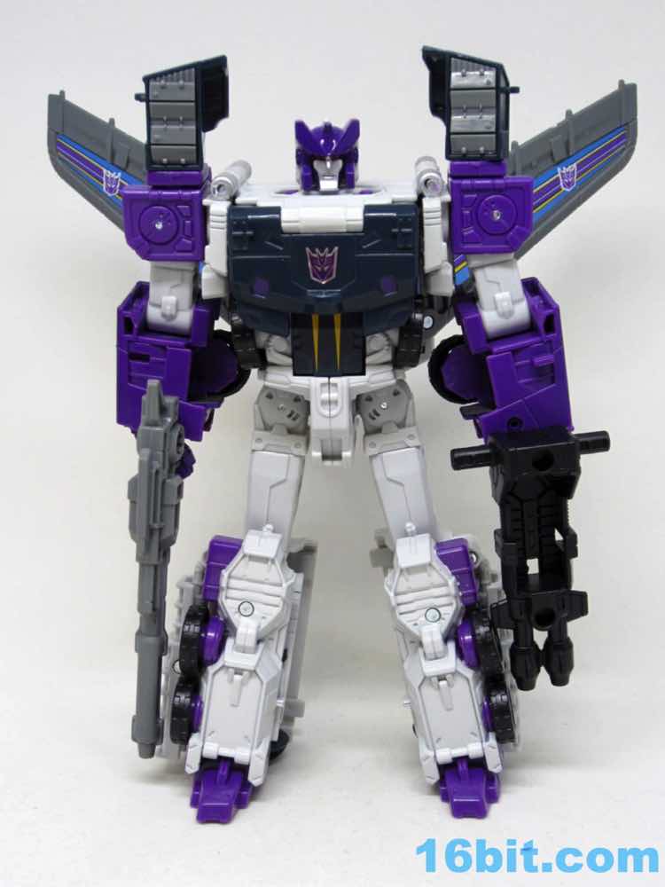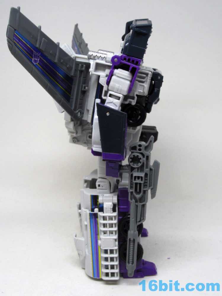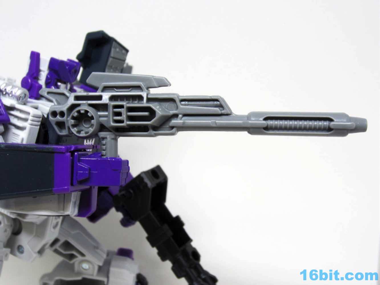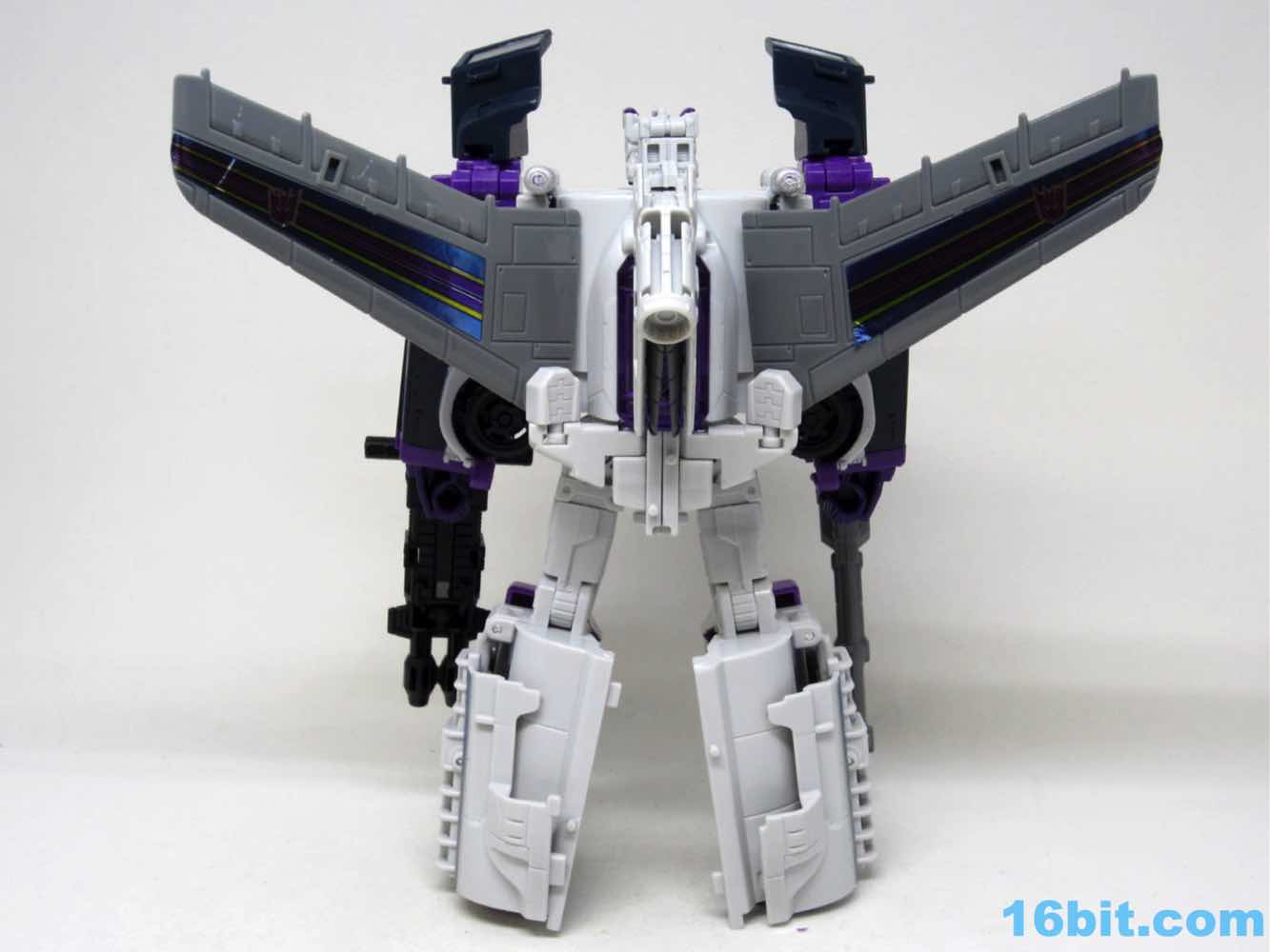Decepticon Octone is a pretty good update - you get some features you wanted, and some you didn't want. Vestigial Optimus elements include spring-loaded pop-up ear antenna, plus the shoulder stacks which weren't part of the original toy. Otherwise, the robot is pretty good and has been decked out in somewhat fragile foil stickers that do not hold up to simple handling, let alone rough play. I hope Hasbro abandons stickers entirely. I like that the face and overall build captures the feel of the original toy with things like hip joints and better arm movement, plus it stands over 7-inches tall. There is no tail fin weapon, but you do get a decent rifle and G2 Laser Prime's double-barrel cannon thing. The generous application of color through stickers is most appreciated, and this is probably the best of the three modes.