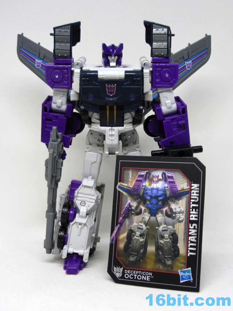 It's kind of funny to see almost-right names on toys for trademark reasons, like Decepticon Octone. (It's his Japanese name.) The last update of Octane was sold as "Tankor," arguably one of the worst robots - but a decent plane and an acceptable truck - since the whole classic revival kicked off in 2006. This toy may look familiar, because it was also Optimus Prime [FOTD #1,579] last year.