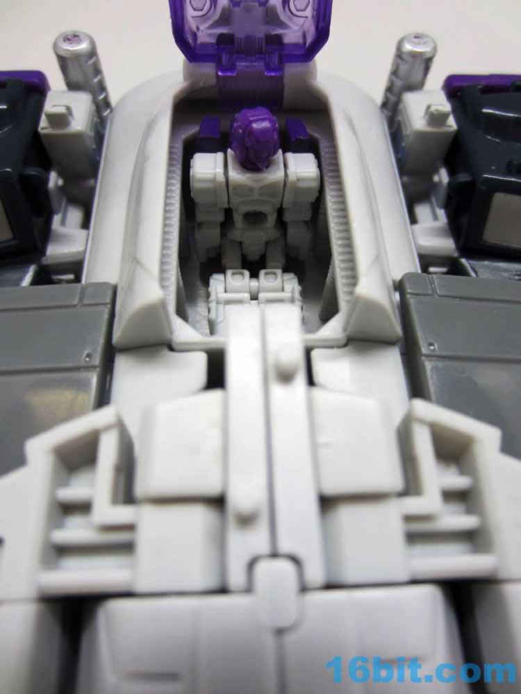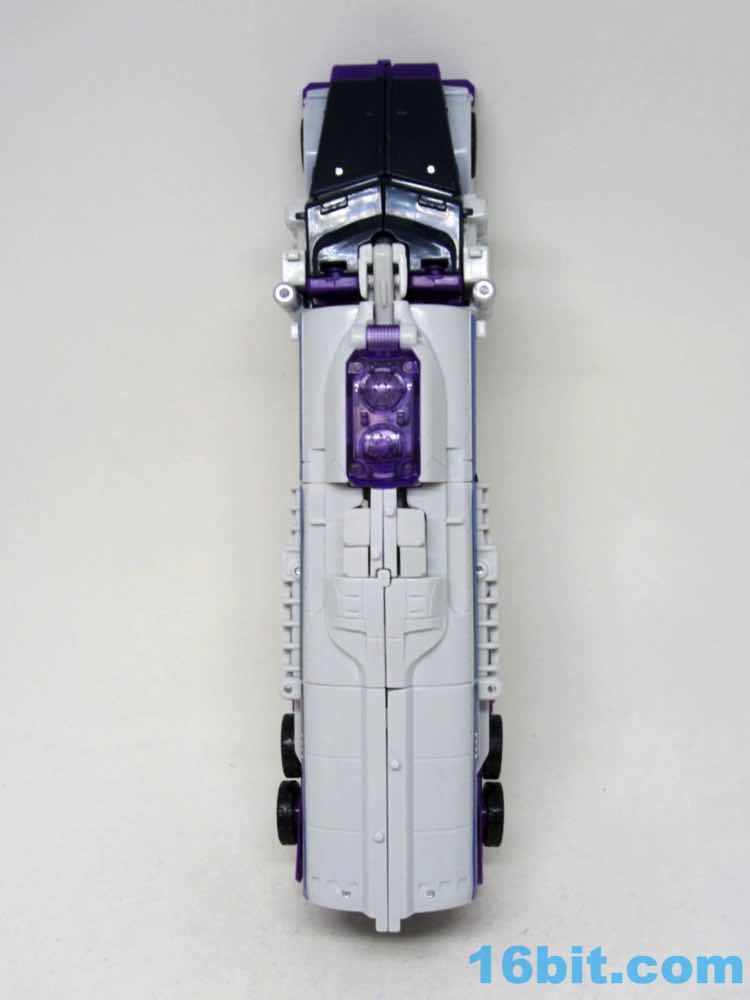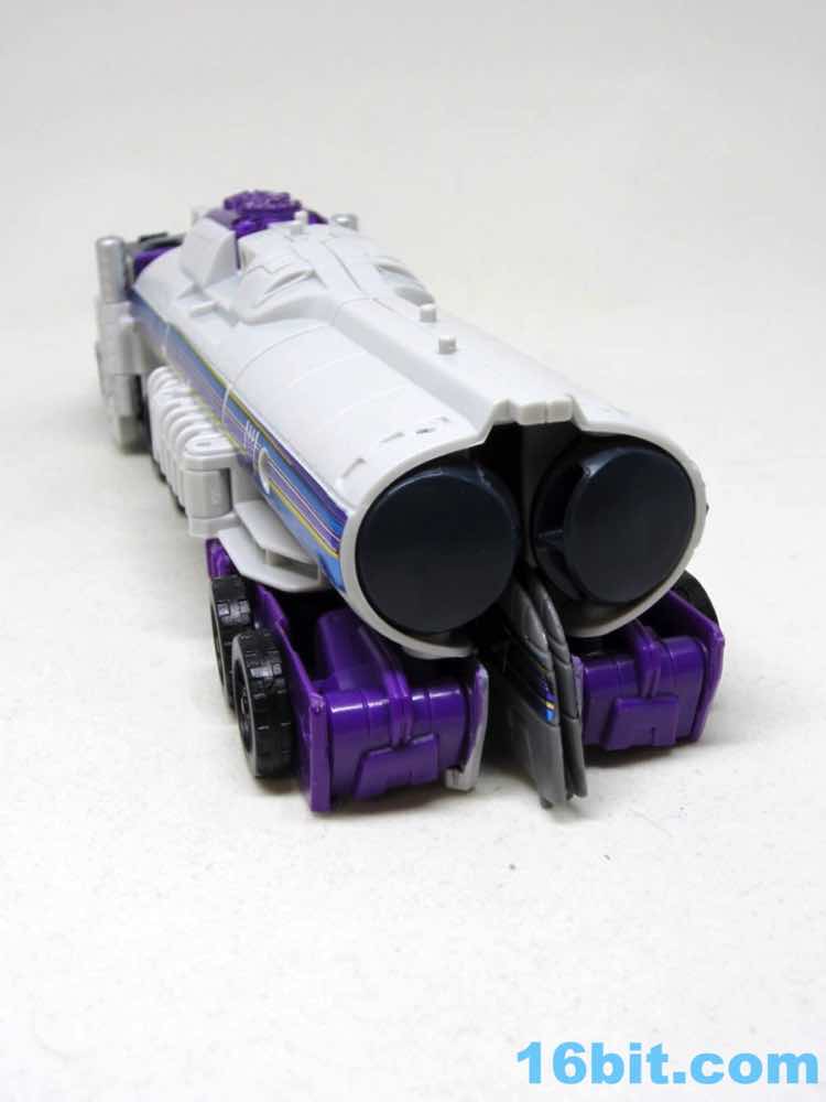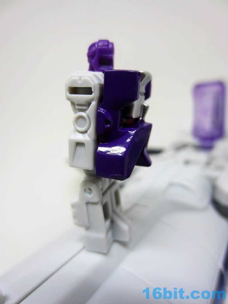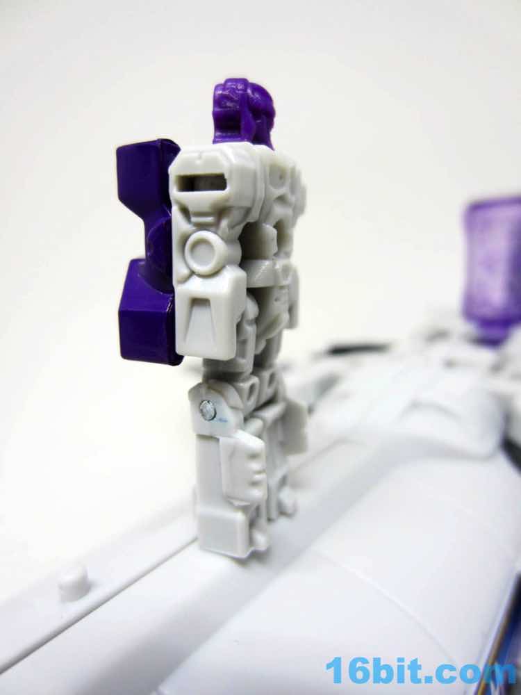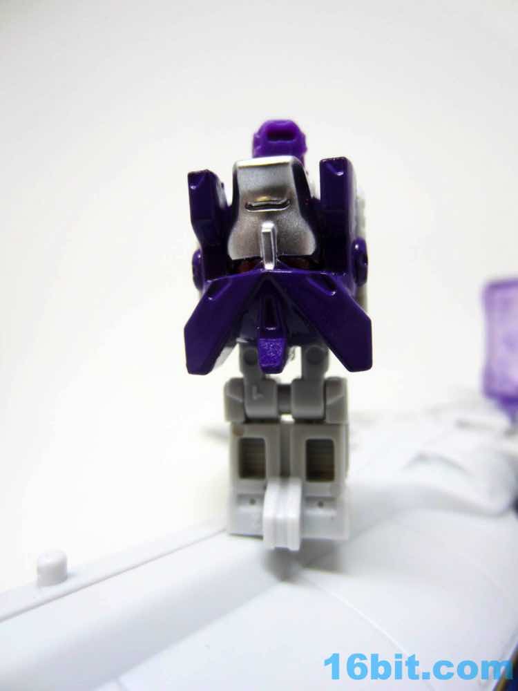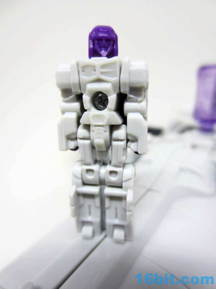This 1.5-inch robot Titan Master Murk is Diac in new colors. There are 5 points of articulation and no paint to speak of on the front of it. The purple head looks fine, and the rest looks something like a Diaclone driver. It's cute. He can stand and sit, plus he pilots the vehicle modes of the larger toy through either the handheld weapon or the purple hatch on top of either mode.