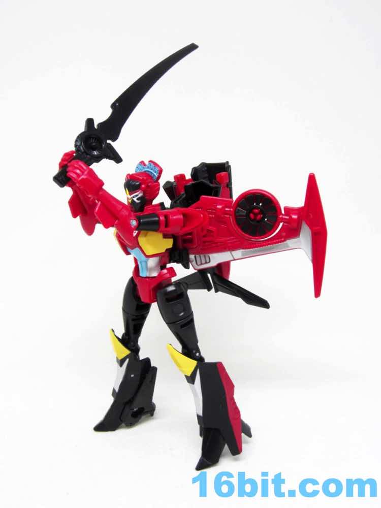 Item No.: Asst. B0070 No. C1079 Manufacturer:Hasbro Includes:Shealth, sword, red fan with blue paint in her hair Action Feature:Transforms from Plane to Robot Retail:$14.99 Availability: January 2017 Other:Windblade with new deco, head