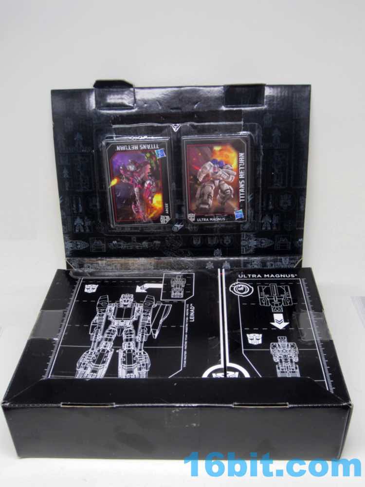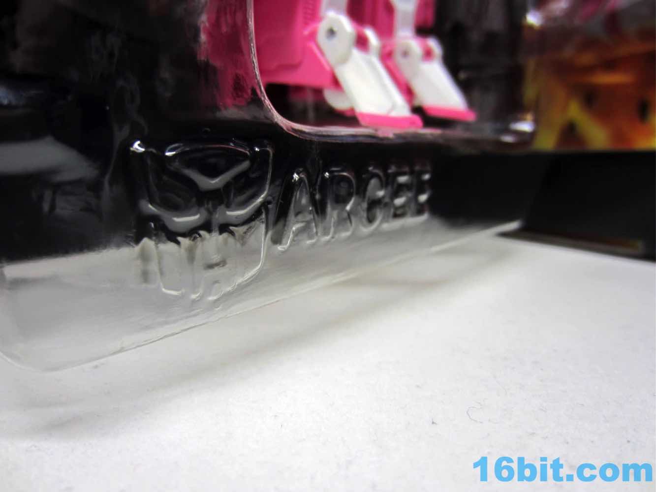 I assumed that Arcee had to be part of a fan club or subscription service - it appears that it is not. Rather, the figure just looks like she's in a mailer box that unfolds to show off some nifty artwork and trays with embossed name plates for Arcee and Ultra Magnus. Unlike most of Hasbro's packaging, it looks terrible and bland unless you pop it open - and then it's gorgeous. It's a fun experience because you can touch the toys while they're still wrapped in with sock ties, but to get any real fun you have to cut the cords and free them.