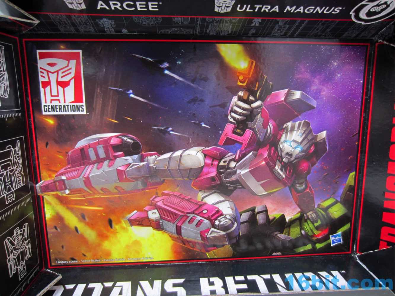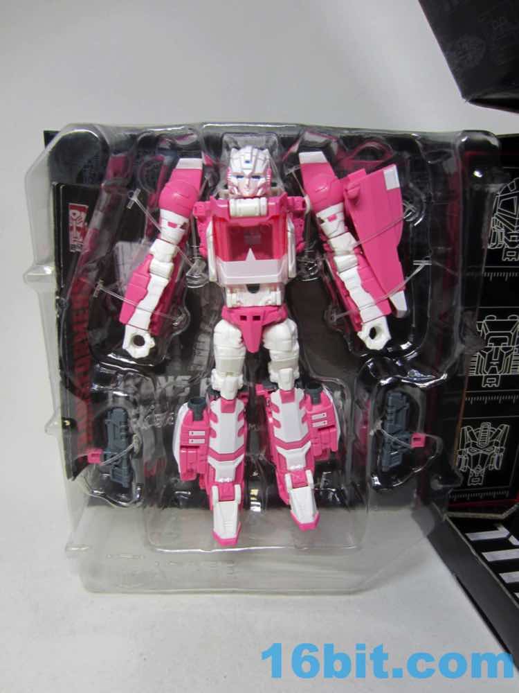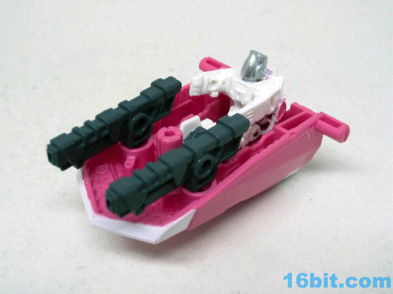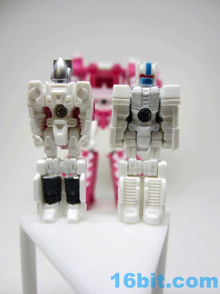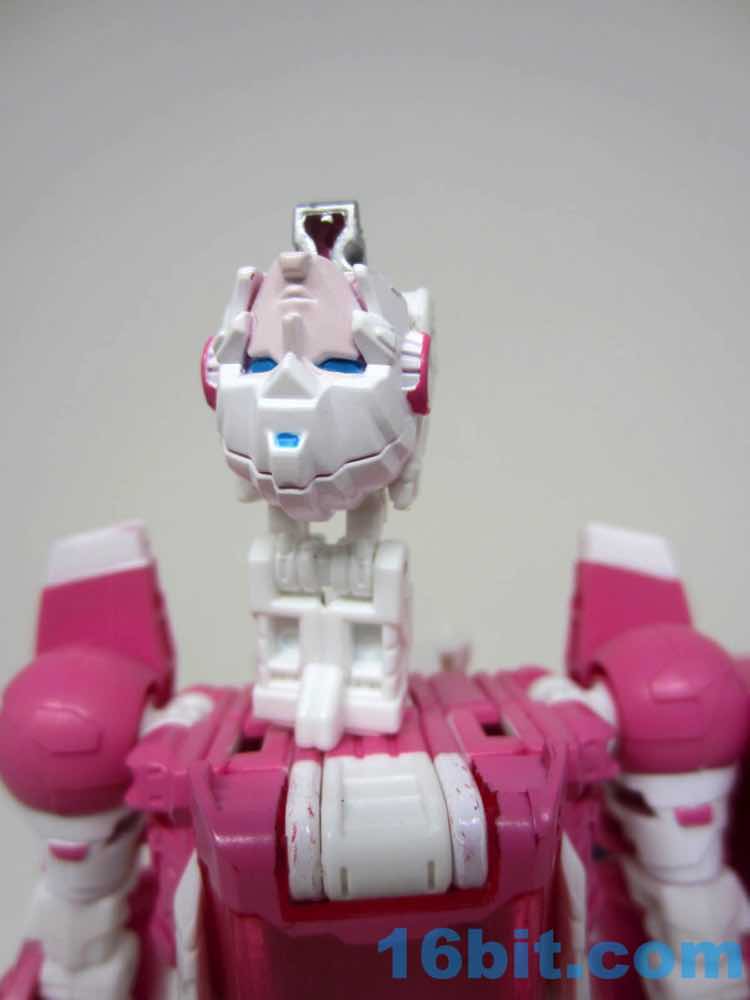 The car is basically Blurr, but in pink, with a couple of new bits. It rolls a bit, and can open up to seat Leinad or another Titan Master or Prime Master figure. The Thrilling 30 version is probably more for most older fans, but if you want a new Arcee this ain't bad. I's pink, at least.