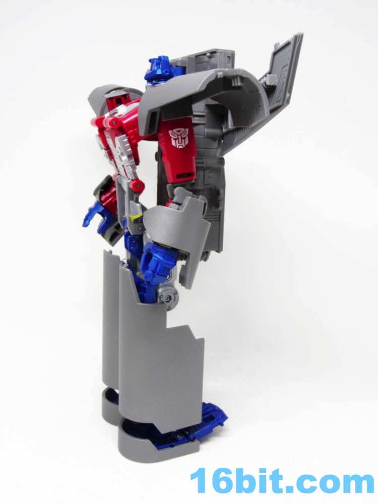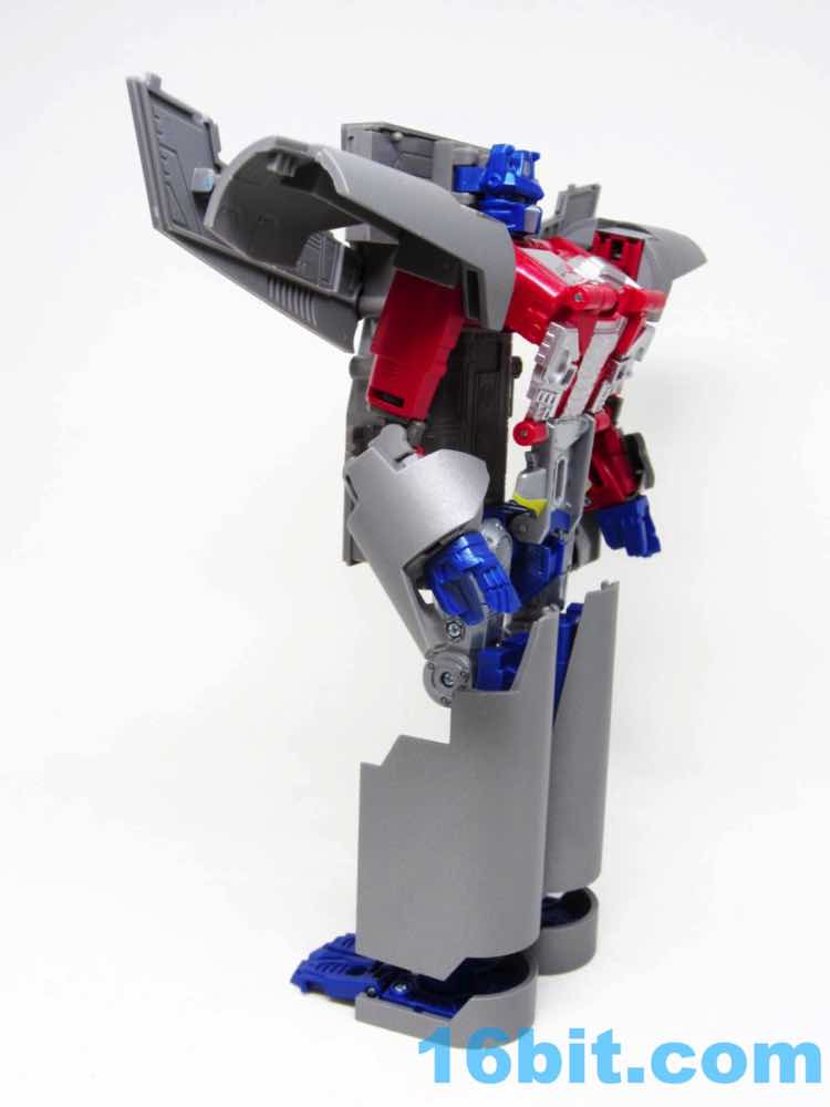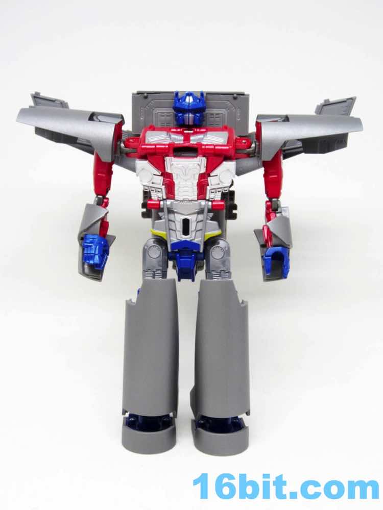 Transformation is easy - pull off the sword/shield/wings panel, pull out the legs, pull out the arms, twist a couple of things, do a Mad Magazine fold-in to get the Optimus Prime head, and you're done. He has weird, awkward hands to hold the strange sword and you can pop some panels off his shield/phone stand to get a winged Optimus mode for some reason. It's one of the simpler toys I've purchased with the Transformers brand, giving you about what I would consider the complexity - give or take - of a Robots in Disguise Warrior-class release.