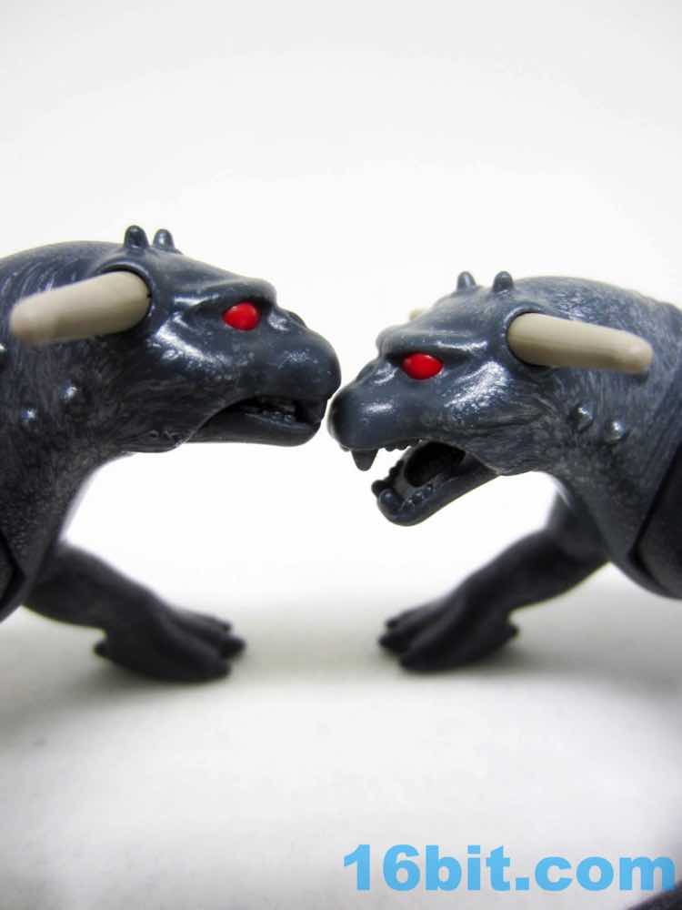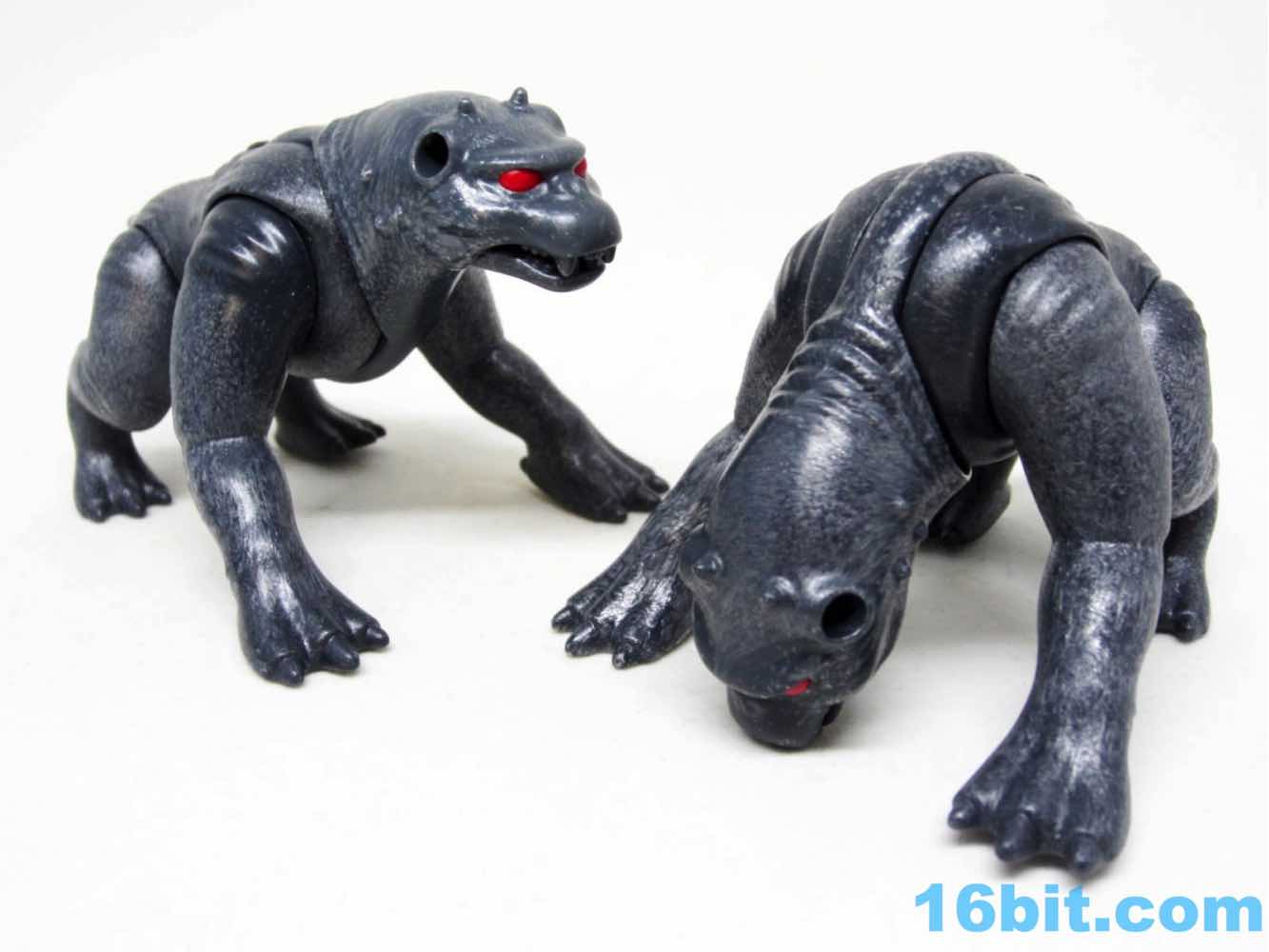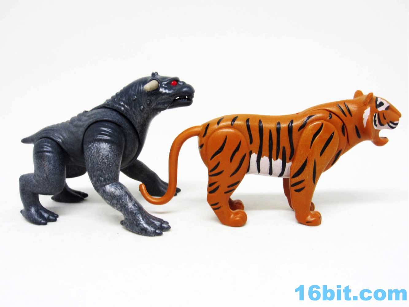Joining our movie's romantic leads are a pair of large demon dogs. Both look more or less perfect, with 5 joints each plus horns you plug in place on their heads. Each has molded-in red eyes and an articulated, opening jaw so they can appear in your refrigerator and growl "Zuuuuuul" until your Peter figure shows up to look at the awkwardly product-placed can of Coca-Cola. The texture is good, the size is smaller than I'd have imagined, but you get two of them and they're of a typically sturdy Playmobil feel. The horns stay in tightly, yet can be removed if you get a grip on them. Each can stand easily on four legs with long front arms and a decent texture for each creature.