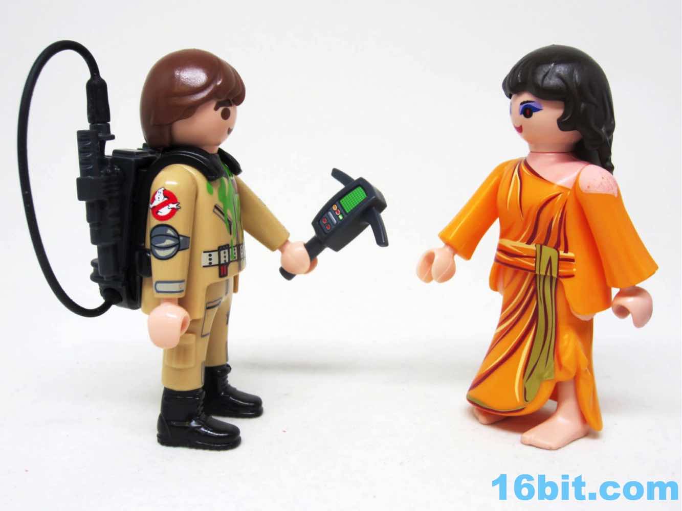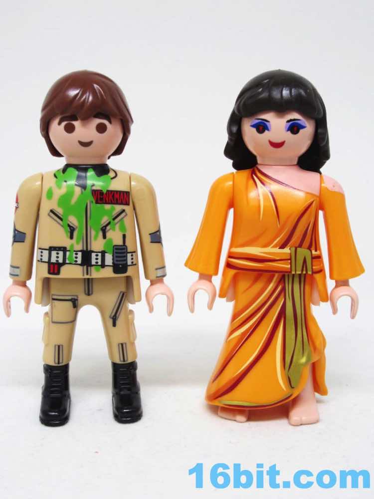 Dana comes in a dress with bare feet and no accessories. Her lips are red, her eyes are dark and ghoulish, and her hair is more restrained than the elevated 1980s halo we saw in the movie. The wrapping of her dress is nicely decorated and is obviously easily reused to make other figures. She also has six points of articulation and is the source of one of the line's few weak spots. Her exposed shoulder is painted flesh color, and mine was a little rough. Normally this isn't a problem on Playmobil toys.