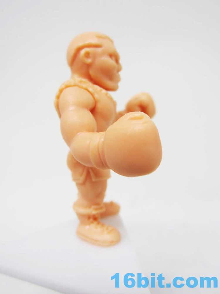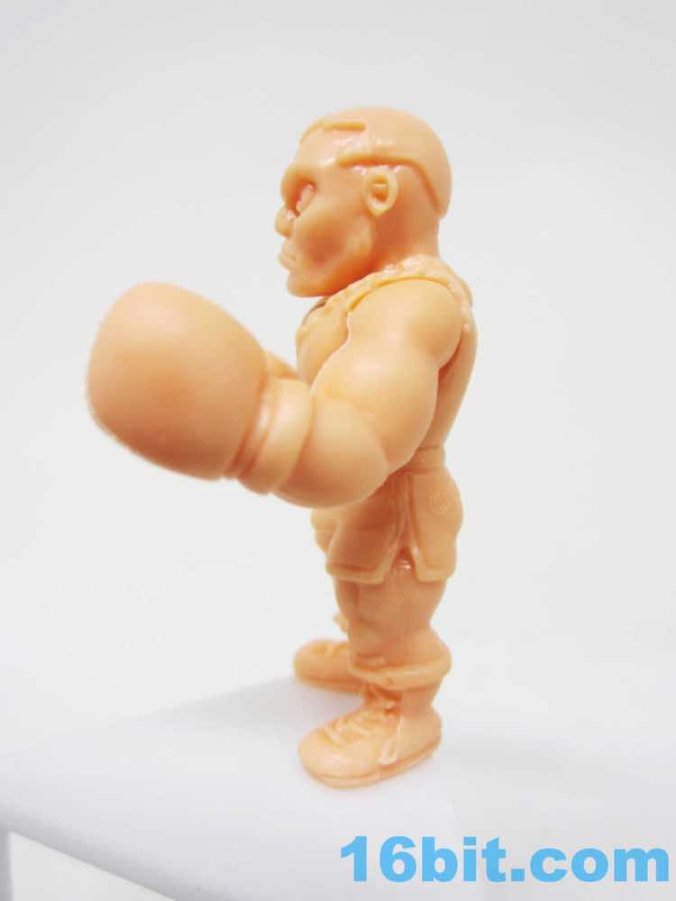 Finishing off the set, we've got Balrog, who looks like Mike Tyson, but for legal reasons is not. He has his boxing gloves, his shorts, his sleeveless shirts, and unique hairstyle. He has a scowl, but lacks the missing tooth - other than that, it looks a fair amount like him. This figure and Dhalsim are two (of several) figures that would be improper to call "flesh" colored, as the game features a plethora of skintones and the figures have but one. It's a decent one-color figure, but I wouldn't mind seeing something to bring out his colorful costume either. The hairstyle doesn't have the contrast one might prefer against the skin, but it's still a striking 'do with a good pattern. I appreciate that the boxing gloves are exaggerated in this format, as that's a distinctive part of his fighting style.