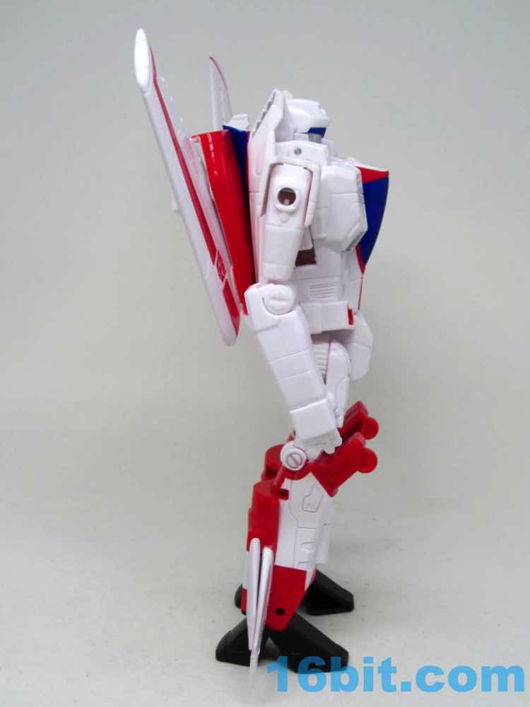 Transformation is a snap, but it's worth noting the helmet has articulated antenna that must be pushed down to transform into the jet mode. It's not a Veritech Valkyrie thing, it's a Seeker with new parts after you move the new wings and body sections in place. The feet fold in, the arms go down, and the panels flip nicely and easily. There are instructions on the box, but you likely will not need them.