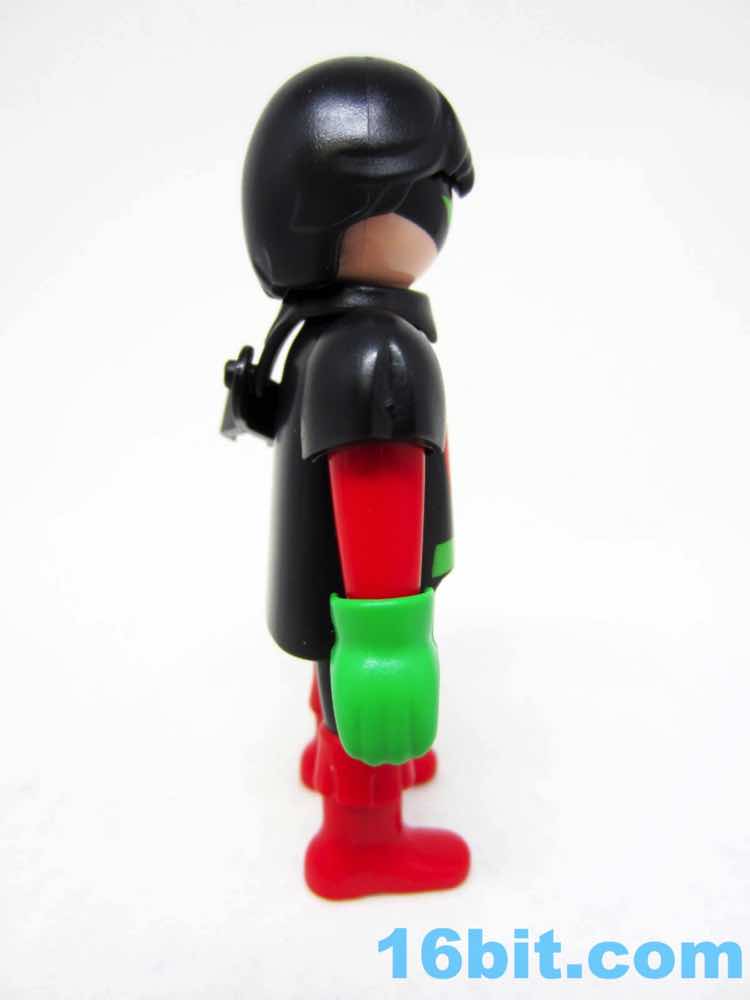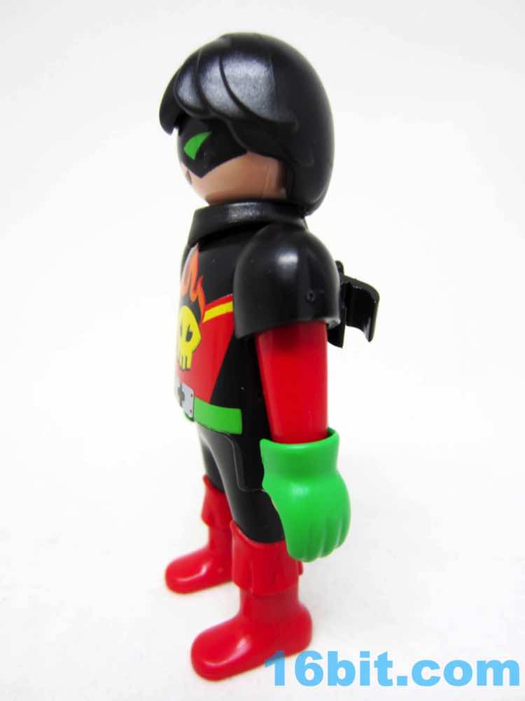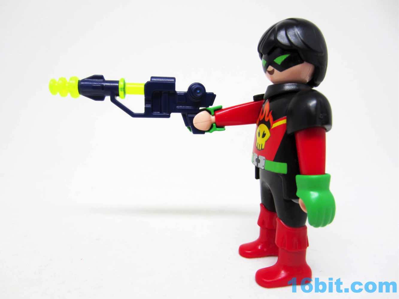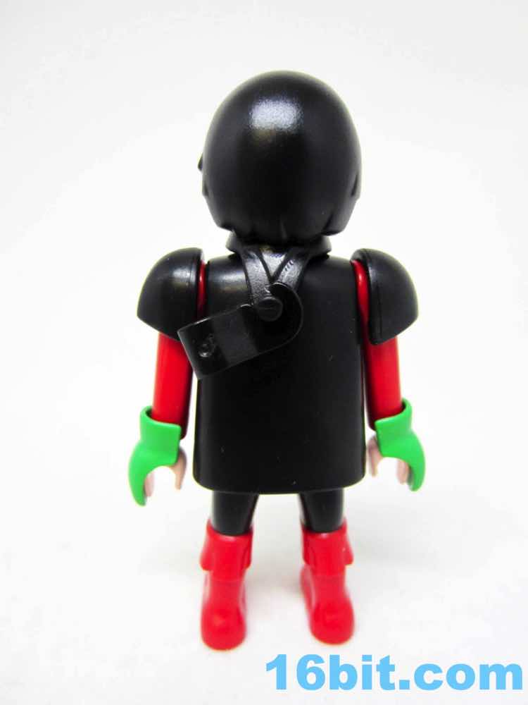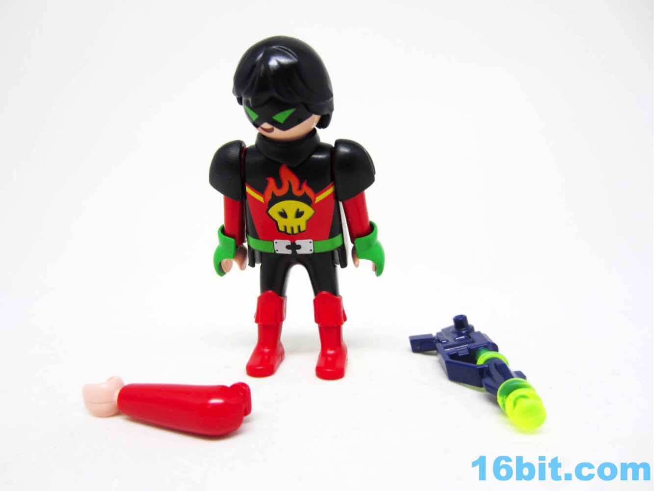 Playmobil's homegrown superheroes are neat, mostly because you can smell traces of other characters in them. I smell a tiny bit of Robin in their Flaming Skull figure, which has no name anywhere so let's call it that! He's mostly red and black, with green gloves and a green belt, plus green eyes in his mask. The head has inset molded eyes and a mouth, all painted over to bring you the superhero charm.