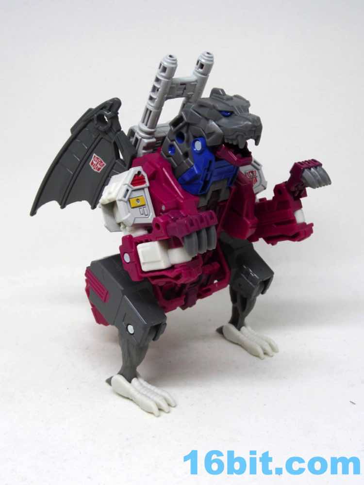 The creature mode is a gargoyle, and while it doesn't shoot out cold sparks like the original it also doesn't look like some sort of botched beaver taxidermy. This may or may not be a plus to you. Its wings and legs look like Twinferno, but the head, chest, arms, and vibe are new. The claws look pointy, and the figure has fairly extensive paint to bring it in line with the original 1987 toy.