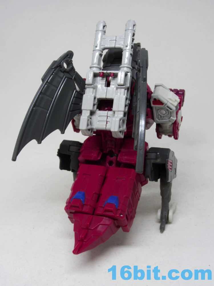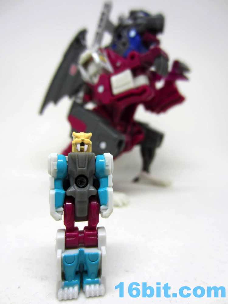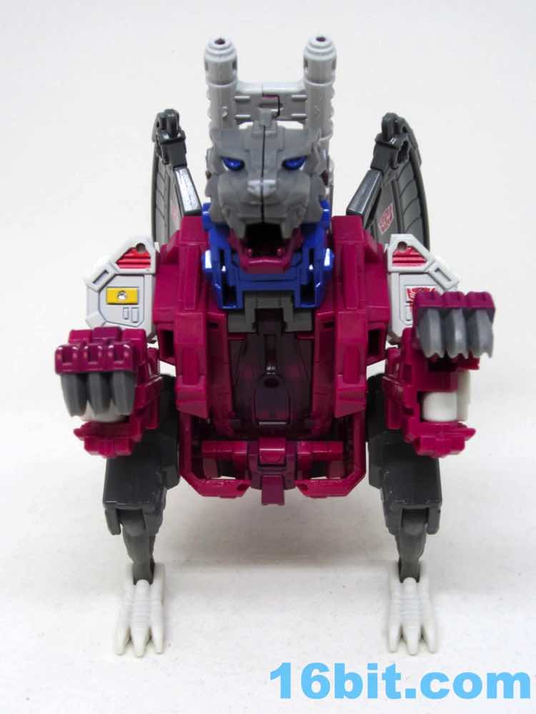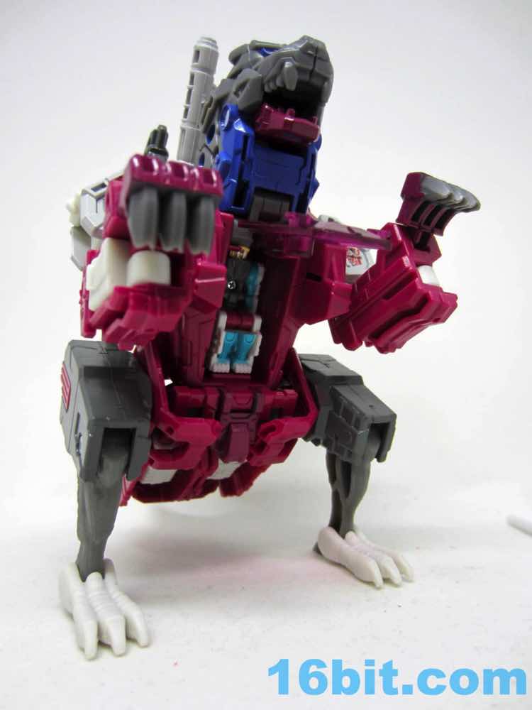 Transformation is basically like Twinferno, but the parts fit together a bit better - the hips tab in to place better than Twinferno, but it's still a nuisance. Getting the claws and feet in place are pretty easy, and you can probably do this one without the instructions. The hips will be a pain regardless of if you know how to do them properly and in order. It's not unfun, but it's a bit tricky - it's a good choice to give a figure like that a place of honor in a poorly-explained collector special series that is arguably the most interesting and strange thing we've had in ages.
