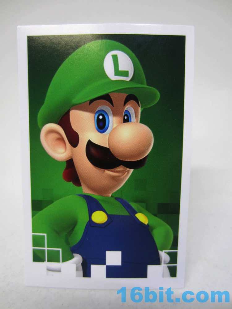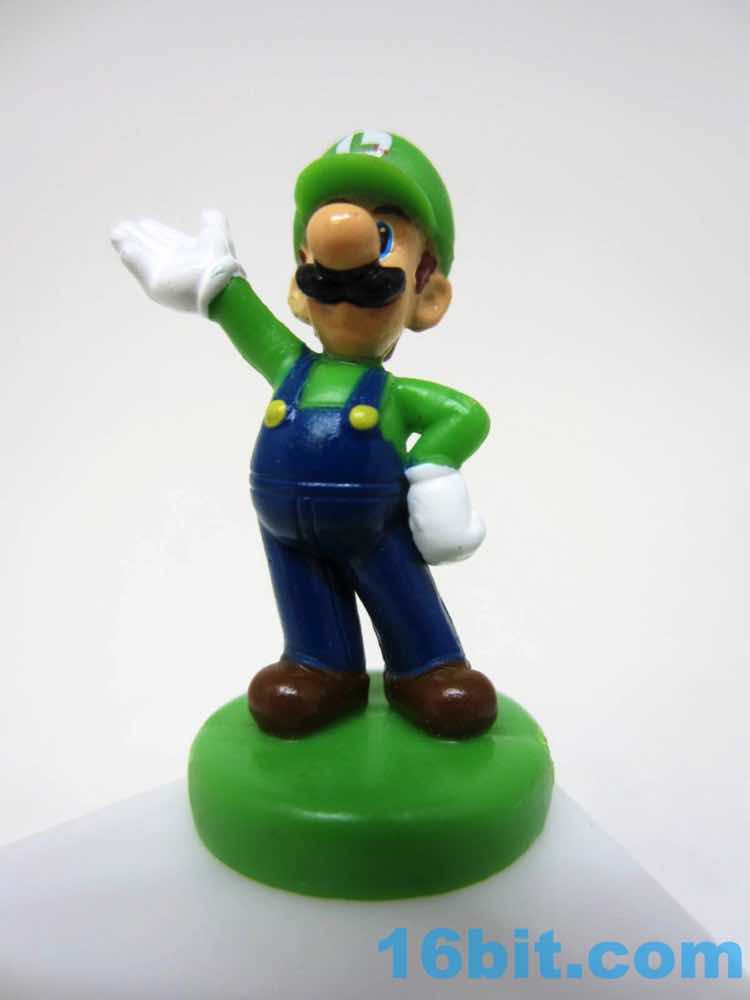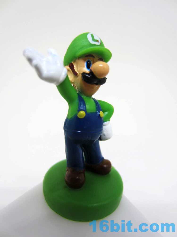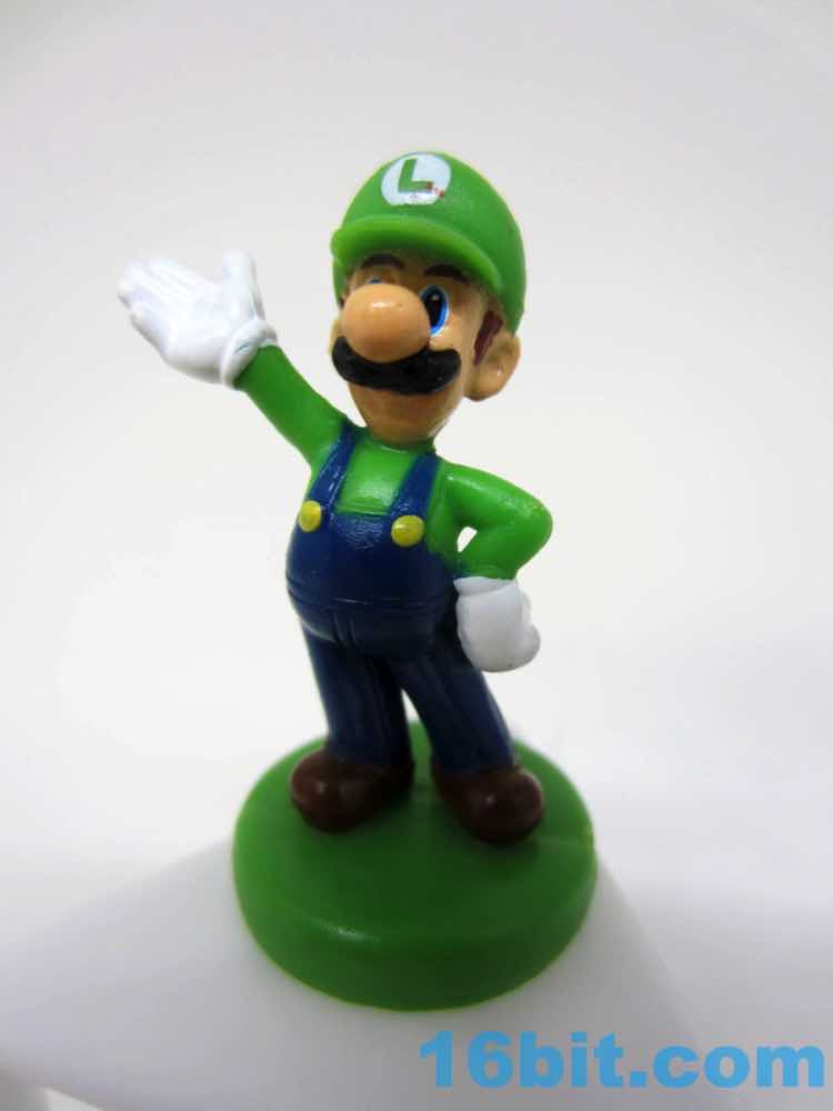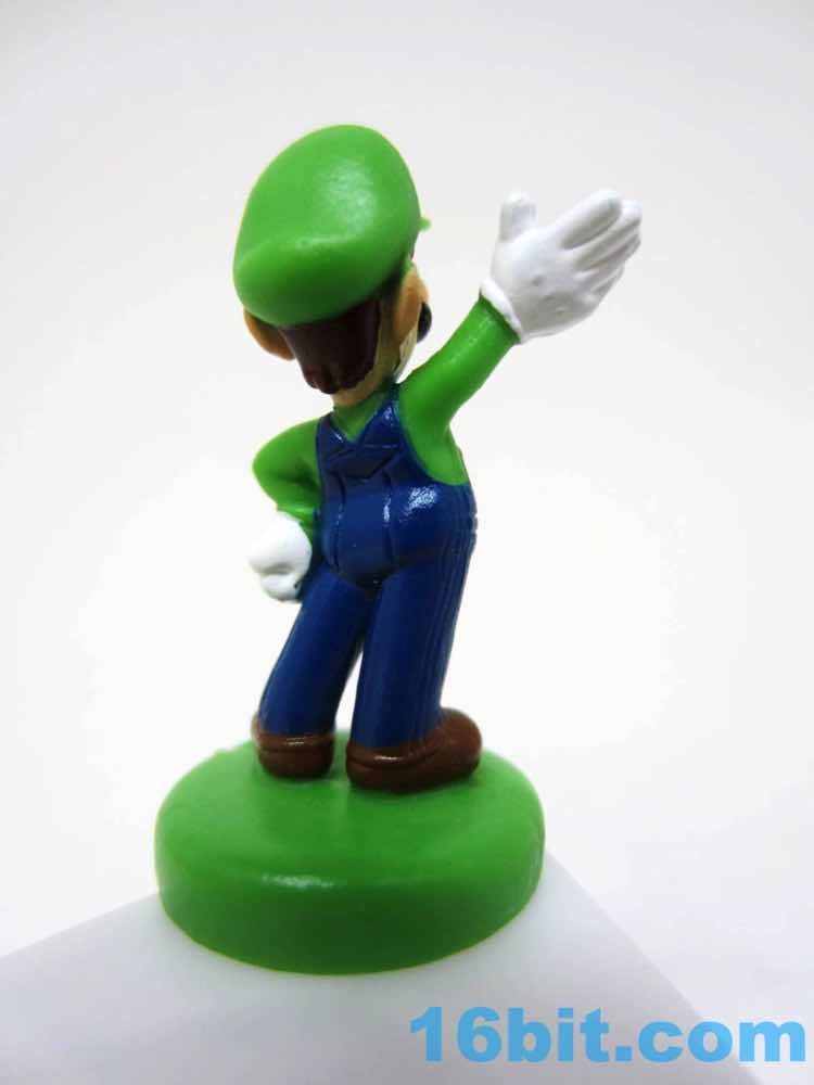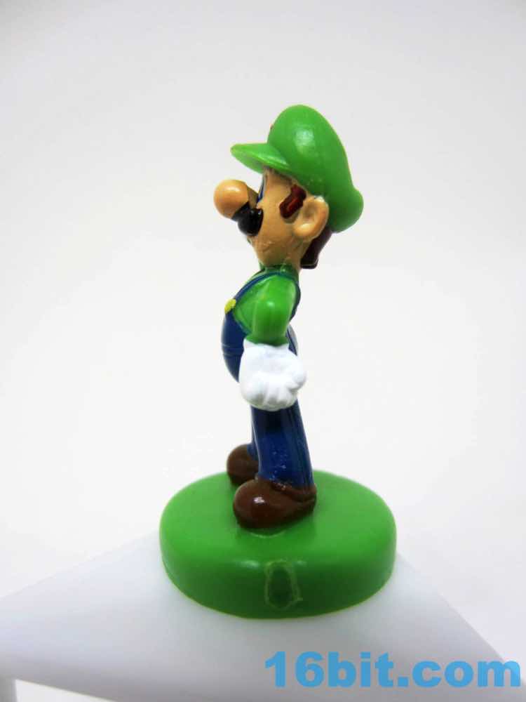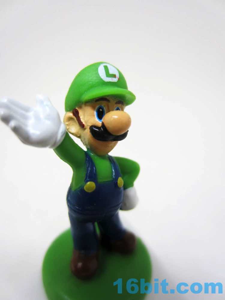 The tiny figure comes on a display base molded in geren with painted gloves, coveralls, and facial details. There are a few smudges, but on the whole it's the right color and paint is even and clean. I'm more than a little surprised to see three colors of paint on his eyes in addition to tiny eyebrows and sideburns. Back in the 1990s, you would be lucky if the figure had anything beyond being molded in gren plastic - this one not only has painted stitching on his pants, but painted yellow buttons too. It may not be the Luigi toy of your dreams, but at the size (and price) it's pretty impressive.