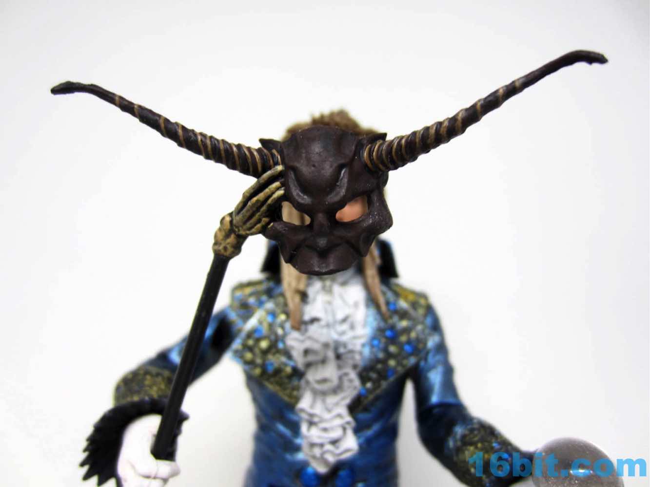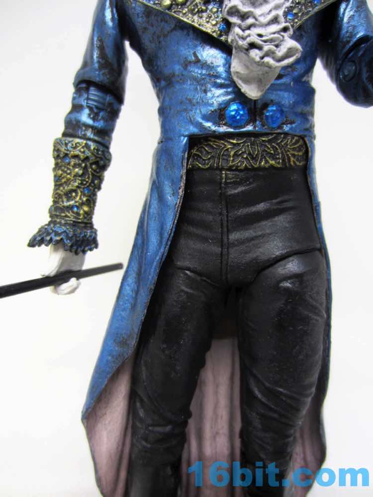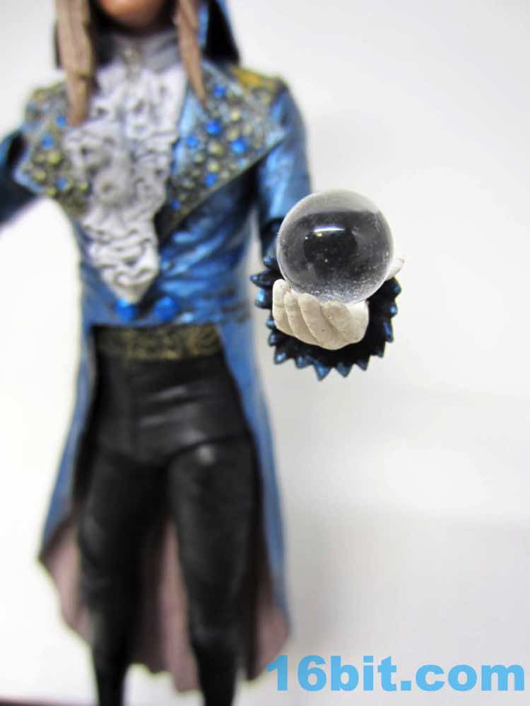 The coat is stunning - metallic paint, sculpted folds, jewels galore. It looks amazing and things like the lining of his coat really shine. The white gloves are perfect, if a little tight - getting the mask in his fist is a squeeze, but his open hand can hold the crystal ball if you're so inclined. It doesn't grip it, it just rests there - so take care to not lose it. His pants are insanely tight, as I assume one might expect. The ruffled shirt is decorated wonderfully, and the face - while a little dark - is loaded with both sculpted and painted detail. It's really sharp.