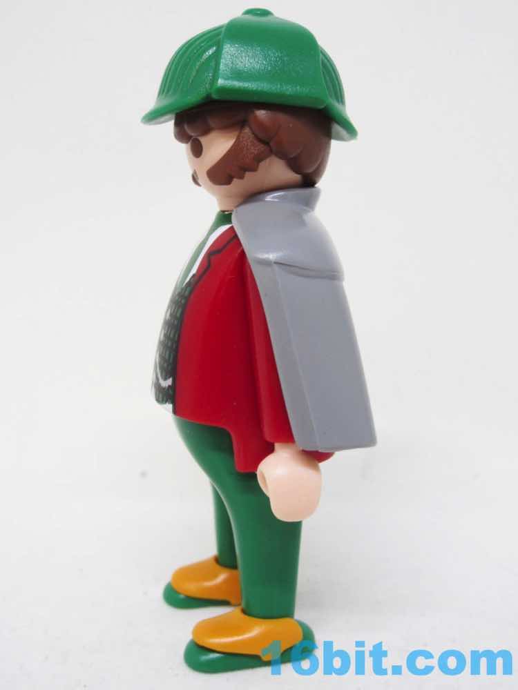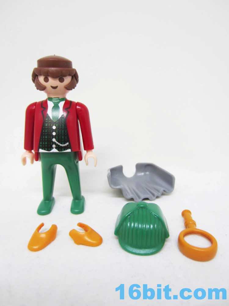The figure is assembled, you just snap on the hat, spats, and cape. He can hold the magnifying glass, and that's pretty much all you have to do - no Watson has been made (to my knowledge), and as one of the earliest "Specials" toys the original was in pretty high demand. The reissue has the printed vest and coat like the original, plus the tie. The colros are a little diferent, although you probably wouldn't notice unless you had an original to compare it to side-by-side. As such, you'd best assume any unboxed sample you see is a reissue.