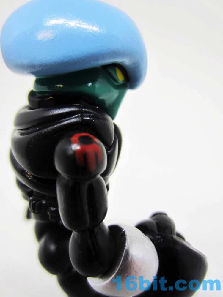 The silver elements like the cuffs on the suit or the silver soles match the figure, and the seemingly awkward yellow red dots on the eyes are clearly an intentional match of the original figure's peepers. The yellow circle doesn't fill the entire eye, plus there is a black line at the top like we saw on a lot of 1980s and 1970s action figures.