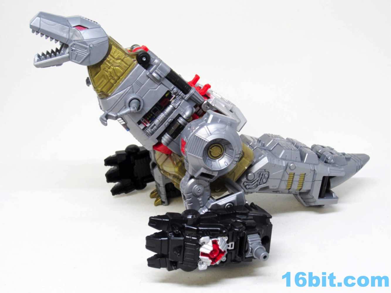 The Grimlock dinosaur mode is pretty good from the front, but from the back it's sort of a mess. You get the tiny arms, the classic Grimock dinosaur head with opening jaw, and a tail that has seen better days. Both the tail and the legs have to service the combiner mode, so they're a little chunkier with gaps to allow for everything to move in place. The arms move, and so do the legs, but the tail is a weird protrusion not unlike other recent releases. The original was no gem, but these are the sacrifices you make to get a giant dinosaur robot combiner team. The look is good, the design is nice, and the transformation is pretty decent. Having said that, I wouldn't be stunned to see a non-combining Grimlock in a few years. The Masterpiece isn't for everybody. As a new toy, this works - but if you want a classic Grimlock, pursue other options.