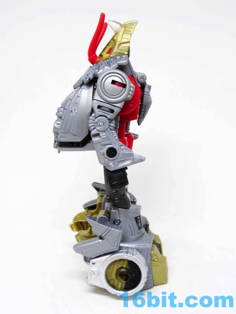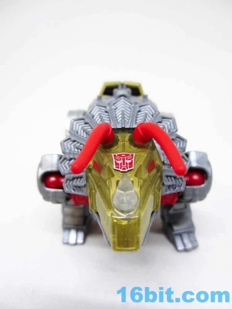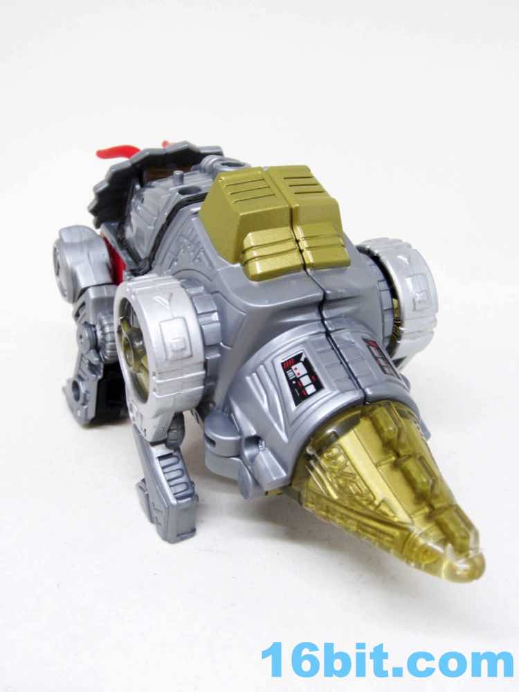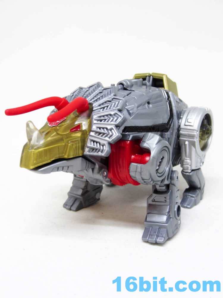 Transformation is easy, those familiar with the previous lines will figure this one out easily. The fists are a little hard to rotate out on my sample, so take care there. The tail tucks away in the back of the legs, unlike the original which just sort of hangs there. Good move, Hasbro. The toy was derisively described by fans as "G1 with knees", a not inaccurate take on the design. He now has decent elbows and knees, plus the robot head can actually rotate left and right inside the Triceratops maw. I'm surprised, because it really doesn't add anything to the toy and it's kind of tricky to move it around. It just shows somewhere in the engineering department cares about this kind of thing.
