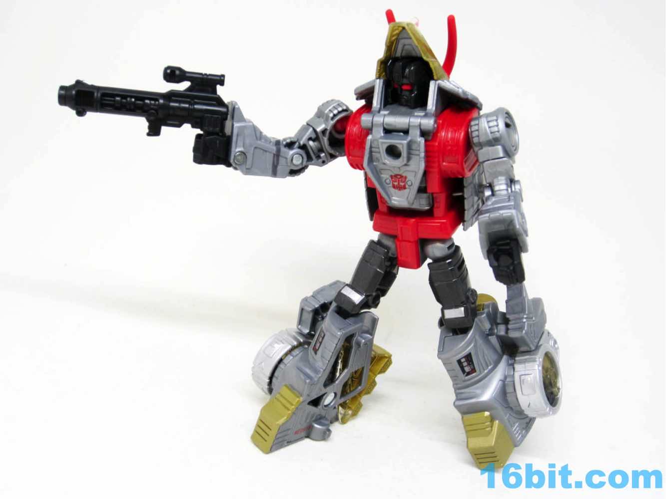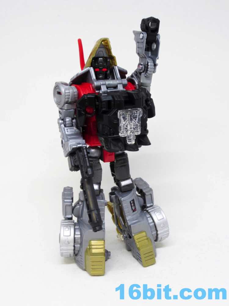 The original toy's rocket launcher and sword are gone, but you do get a decent recreation of the original toy's blaster. Swoop and Snarl have swords, Slug and Sludge have blasters, and Grimlock gets neither. I don't know how this came to be.