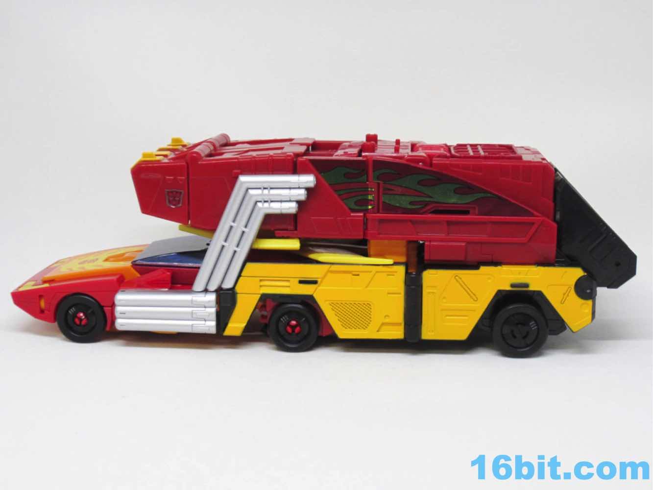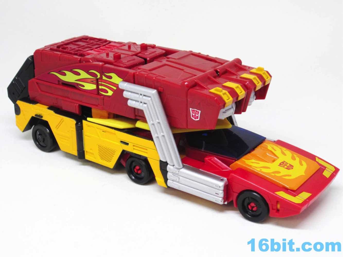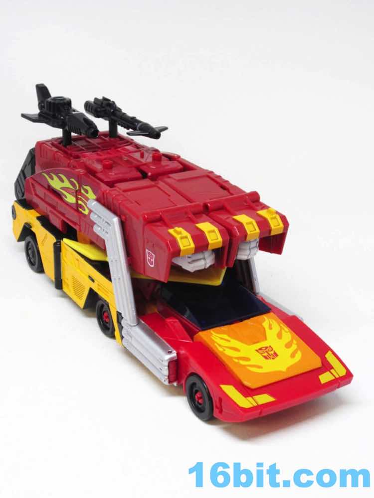 Transformation from each mode is a little frustrating, but that's increasingly par for the course - more small, easily stressed parts will stick or just not move like you hope. Artificial kibble persists, as Hasbro wants to give you a toy that feels like the original, discounting the serendipity of the original designs benefitting from car door wings or hood chests or whatever it is that gives the toy the personality. I had some problems getting the big vehicle mode perfect, but other than that things worked more or less like one might expect.