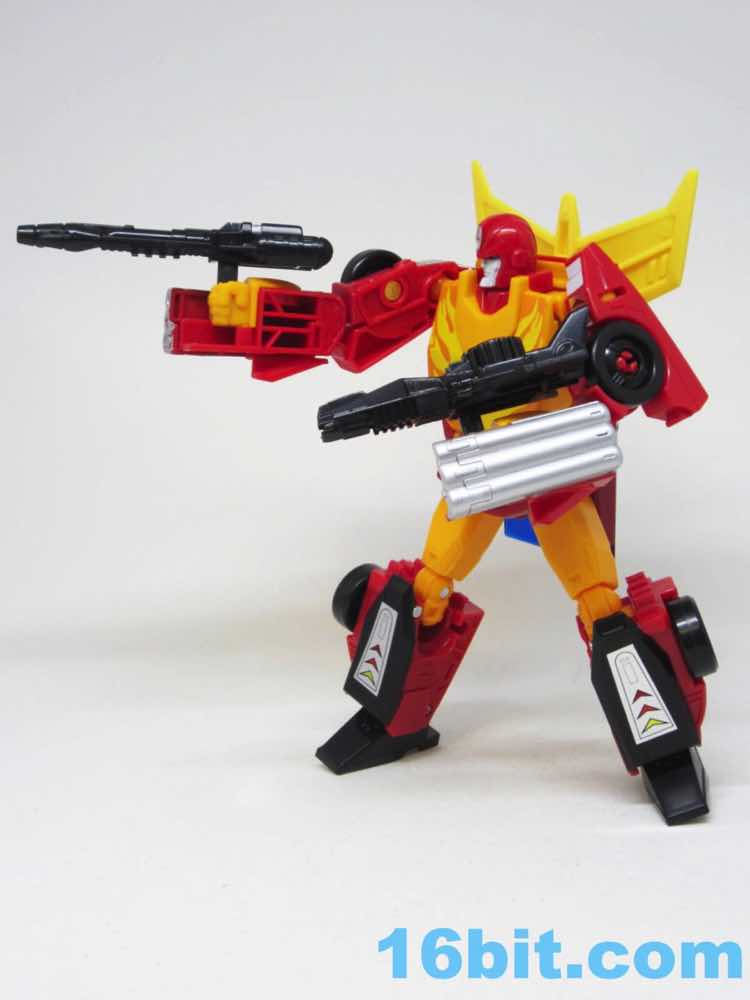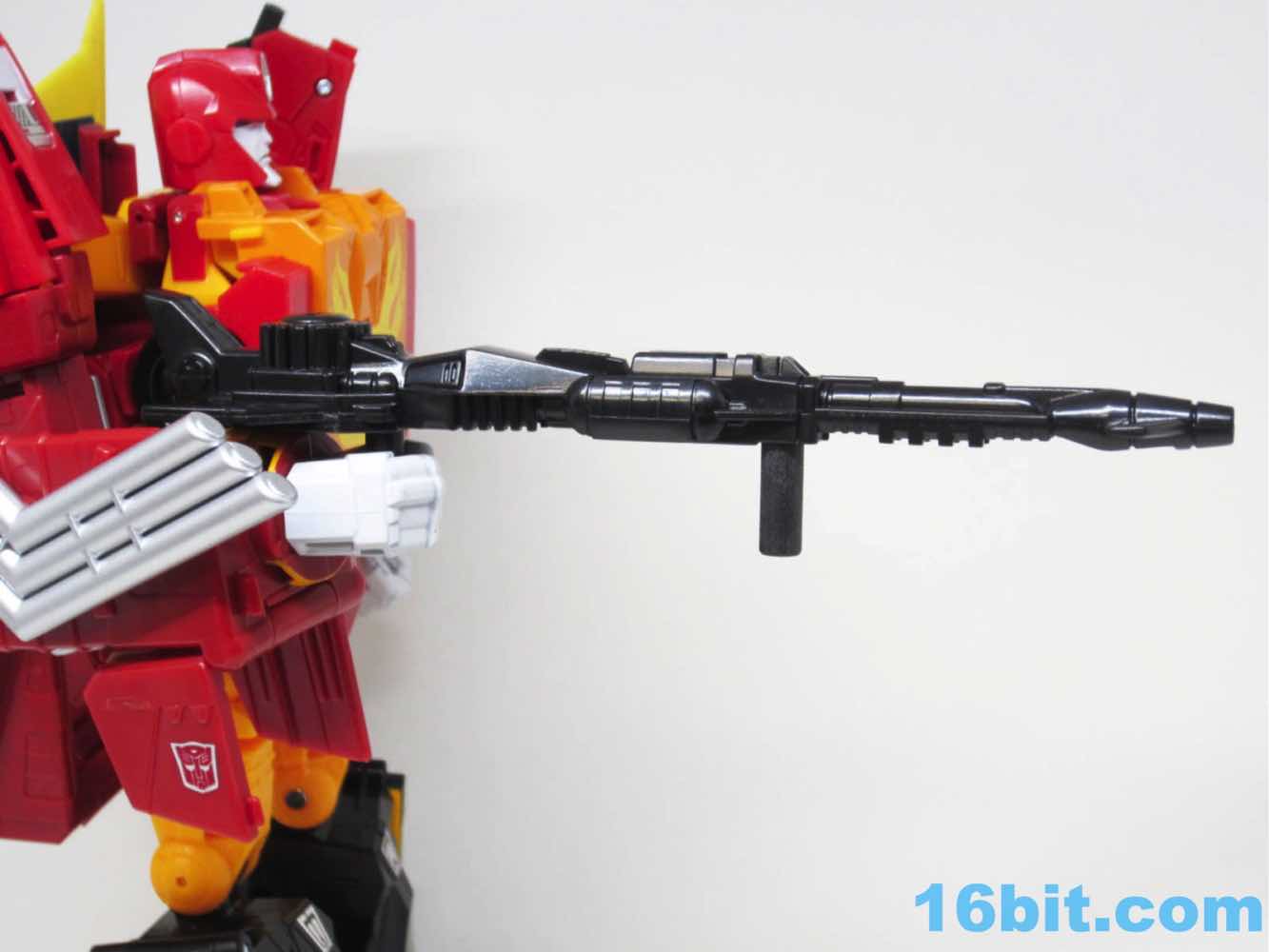 The two-part blaster is really clever. It breaks up to two smaller blasters that closely resemble the original Hot Rod's toys, with a few tweaks. Combined, they look a lot like Rodimus Prime's blaster, with a few tweaks. This is some really inventive design work here, and it's commendable. The design is more fully realized than Optimus' gun too, so it deserves all the compliments.