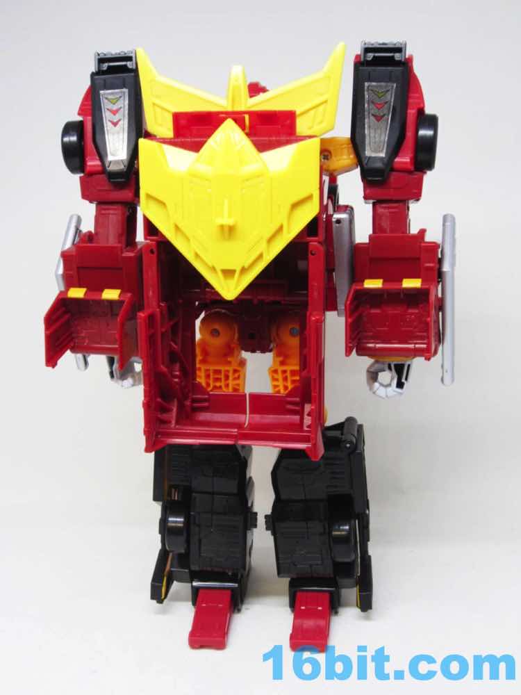 The big Rodimus Prime robot mode is decent, but not quite as good as Optimus Prime. Each has different benefits. Rodimus has swivel wrists, but Optimus has the best ankle joints ever. The big Autobot leader is made of a folded-up Hot Rod smashed into the chest of an otherwise topless Rodimus Prime bulk suit. To access the Matrix of Leadership, you have to flip up the car mode - and it sticks. It's an inelegant combination visually and in terms of tactile function, as I felt like I was going to break it. I didn't break it, though.