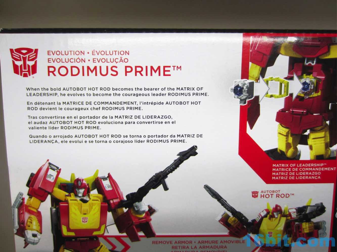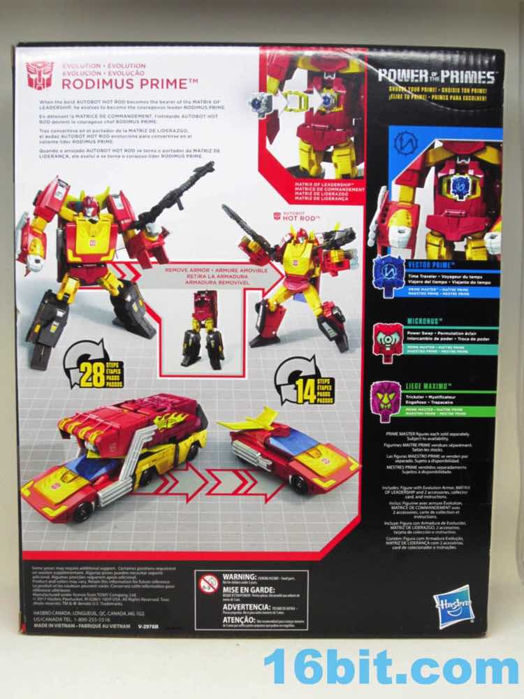 Item No.: Asst. E0601 No. E0902 Manufacturer:Hasbro Includes:2 blasters, trailer bulk, 2-piece Matrix of Leadership, 1 of 12 Trading Cards Action Feature:Transforms from Rodimus Prime to Hot Rod to Hot Rod to Space Winnebago Retail:$49.99 Availability: January 2018 Other: Two robots, to vehicles