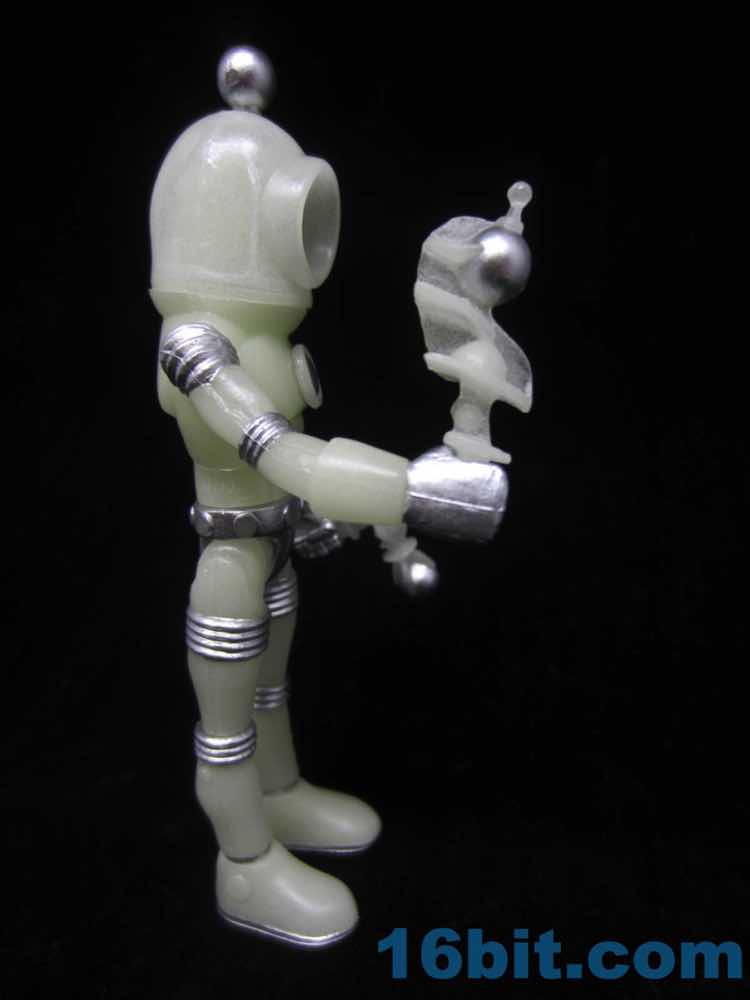 My only complaint about this one - aside from arguable redundancy - is that the head mechanism is a little stiff, probably due to the silver paint on the head piece. This causes it to get stuck in the helmet when I'm spinning it (I think) - it's stiff, regardless. It's pretty, but don't be surprised if yours is a little finicky. The alien look from the 1960s remains with its streamlined suit and ray guns that look like they could have existed just out of view if the children on It's a Small World at Disneyland. Stylistically it's a gorgeous relic, despite being made this century and sculpted by this generation's toy tastemakers, The Four Horsemen, back in 2010.