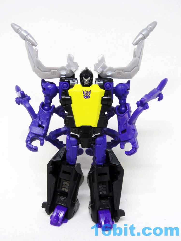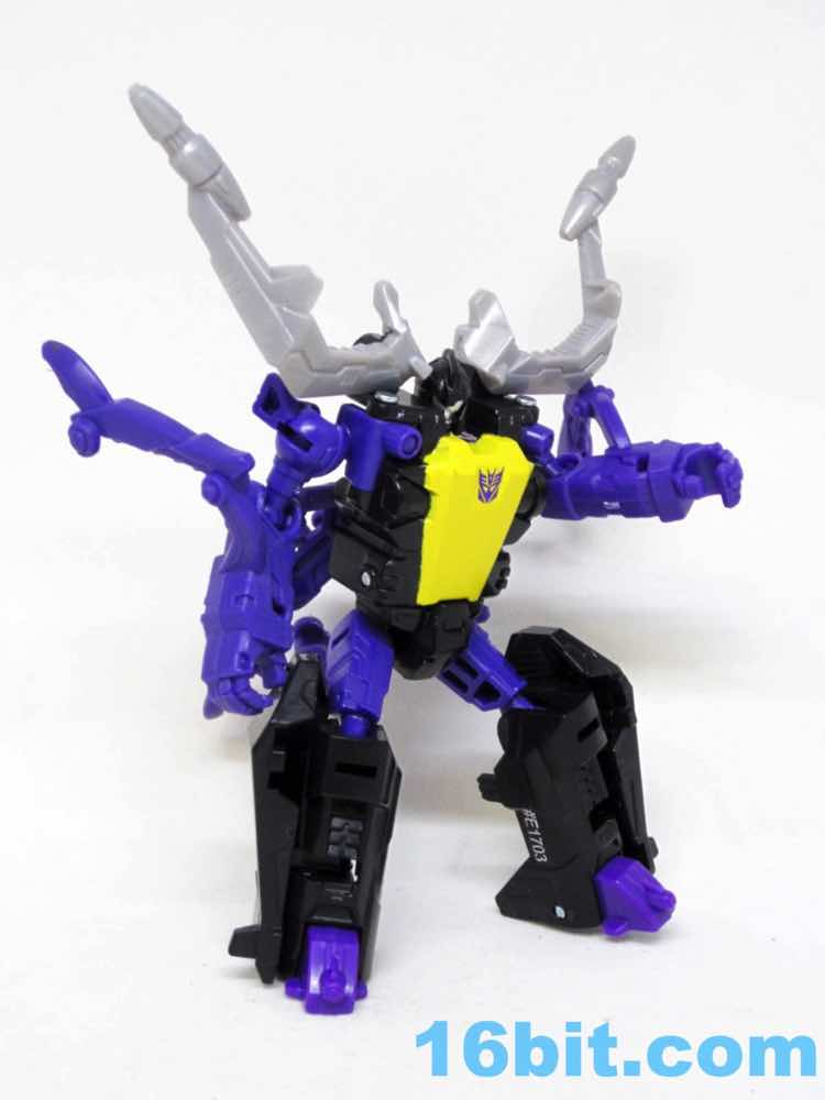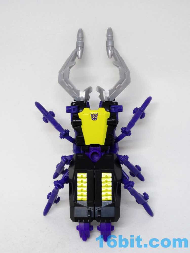 Transformation is the same, and it's a little weird but everything eventually massages in place. There's no place for Titan Masters or Prime Masters to ride, as that would require new tooling. Fans of the original toy may delight in adding another Insecticlone to the army, but for the rest of us this may be skippable. This is a great figure if you missed the original release, but if you have it? There's not much here of value. It doesn't match the other Insecticons very closely, so you should easily be able to discern new from old.