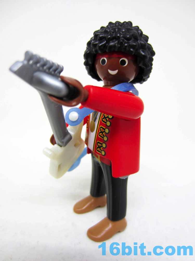 This may not be a figure to hold hands and watch the sunrise from the bottom of the sea, but it's definitely a lot more interesting to look at than most music-related figures. The wide lapels, the bright red coat, and the fancy boots go nicely with the pearlescent plastic guitar. If you can find a better not-quite-Hendrix Playmobil figure, you need to buy it. I like it, and I guess he also doesn't look all that far off from Playmobil's pirate costumes either. Just a thought, if you're more of a nautical fan.