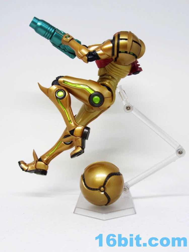 The cannon tip can also be swapped out, with an open tip incorporating the rockets as your other option. The open tip feels like it could break under pressure, and the painted piece is a very tight fit in the arm socket - so take care when using it. Similarly, the hole in her back is a very tight fit for the clear peg on the Figma Display Stand, so don't snap it off in there. The parts all work fairly well, and they clearly put a lot of thought in to how she will live on your desk. Even the morph ball Samus figure has a hole for the display stand. She clearly doesn't need it, but it's here, because someone cared enough to incorporate it.