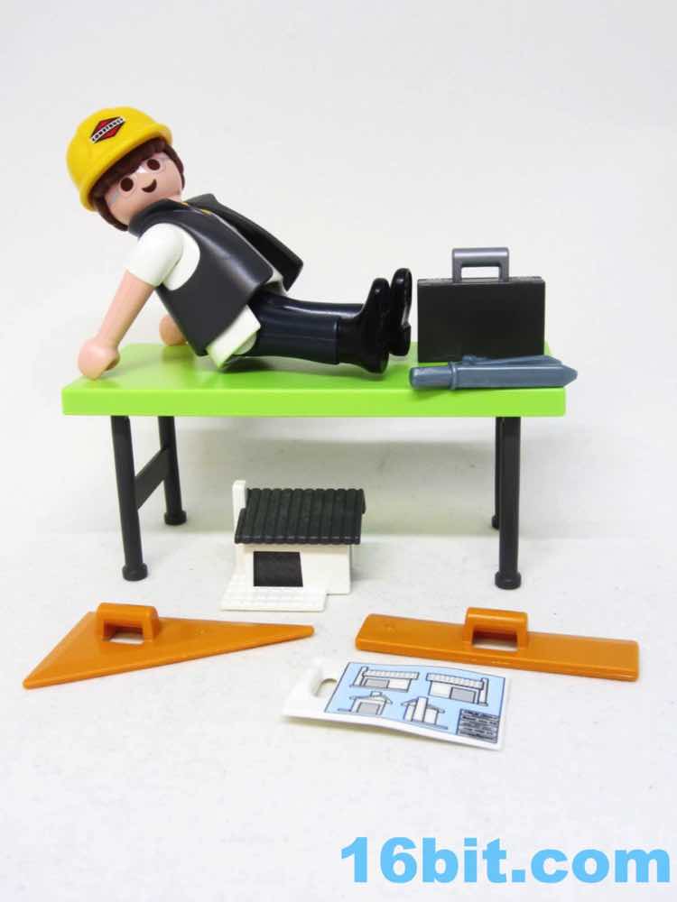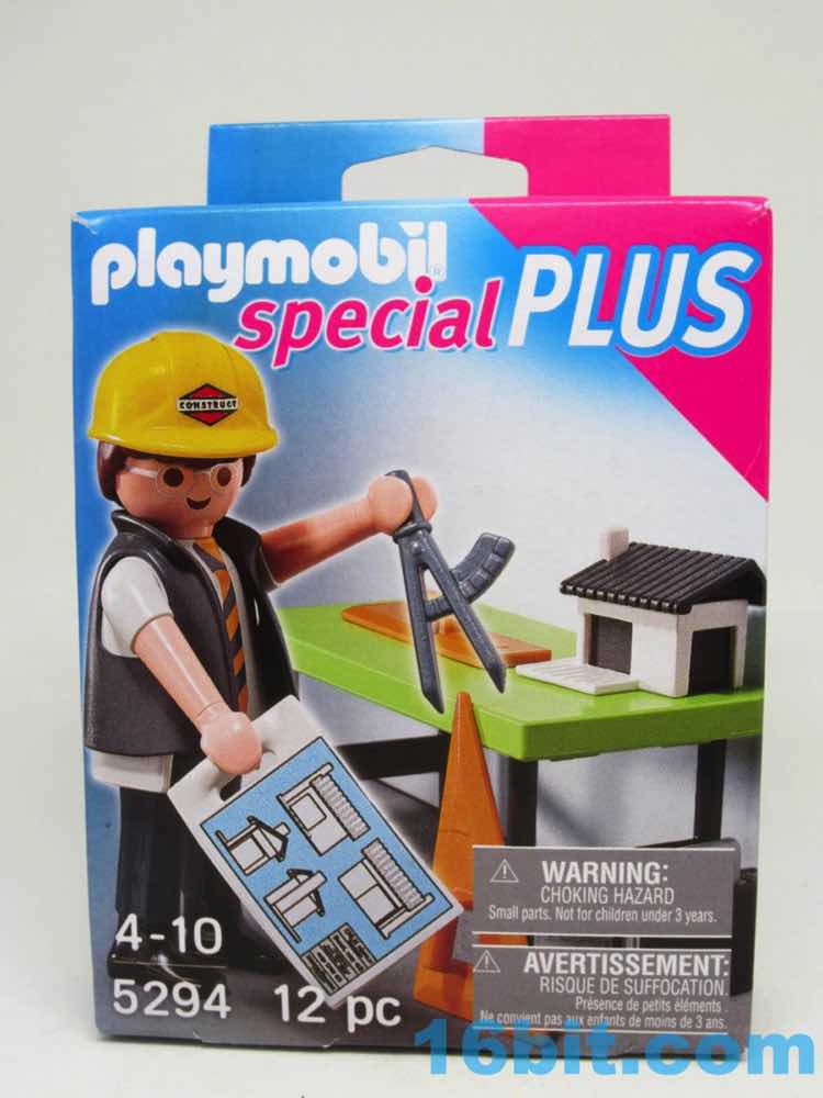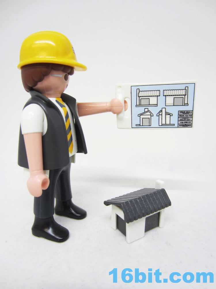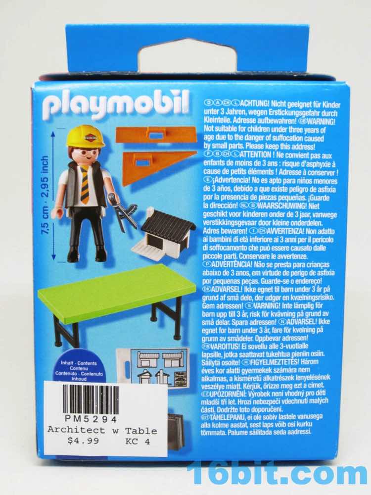Item No.: No. 5294 Manufacturer:Playmobil Includes:Figure, table, model home, compass, blueprints, suitcase, helmet, drawing gear Action Feature:n/a Retail:$4.99 Availability:2013 Other:I can't believe this is real, either