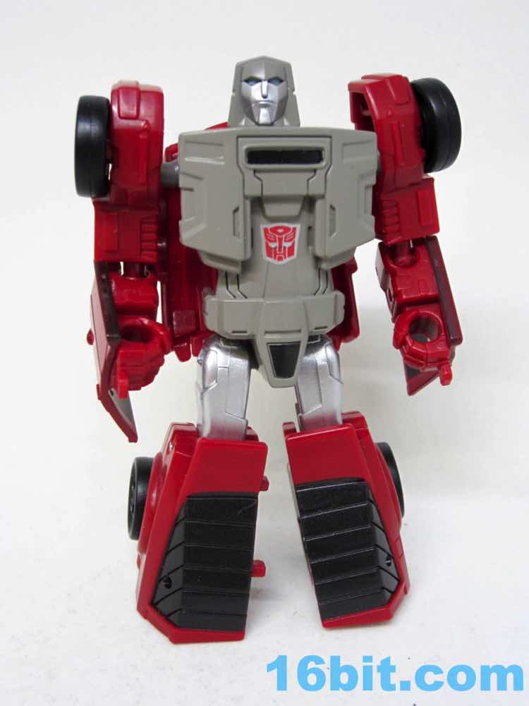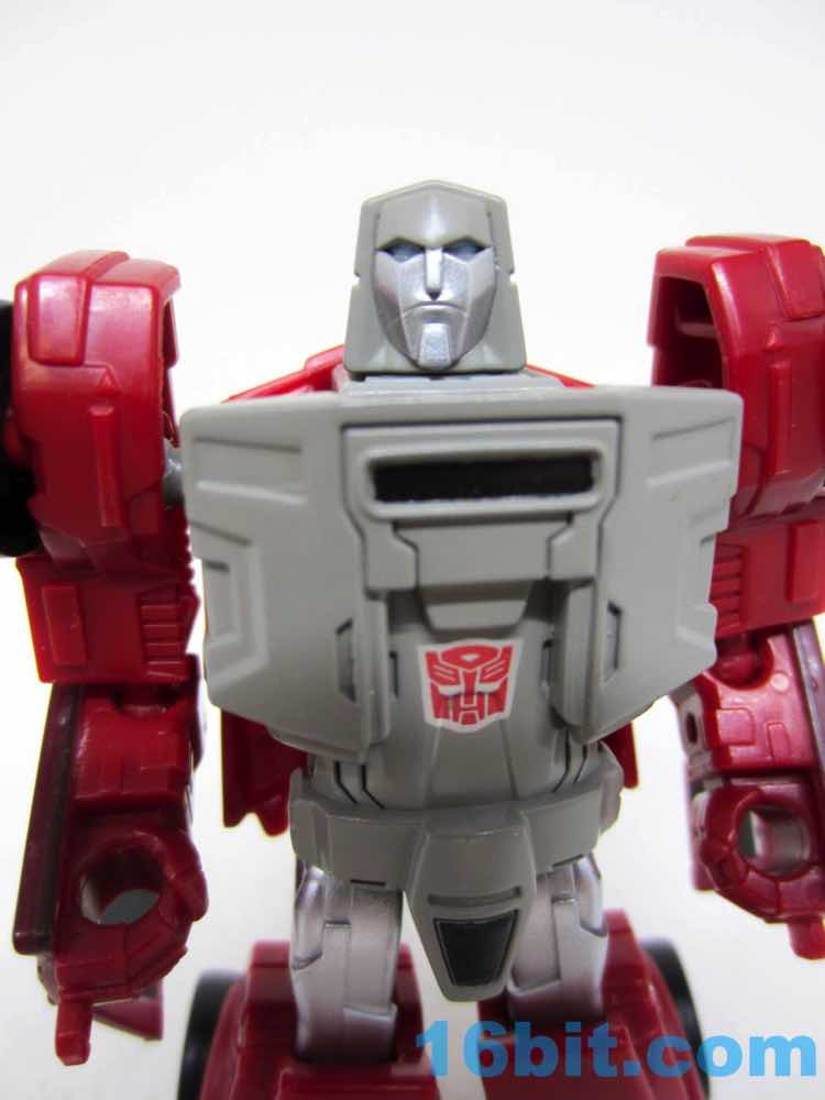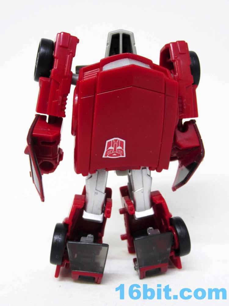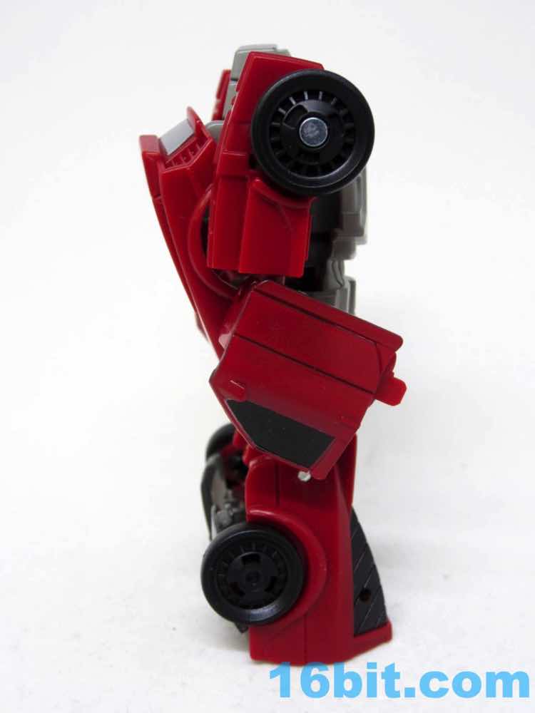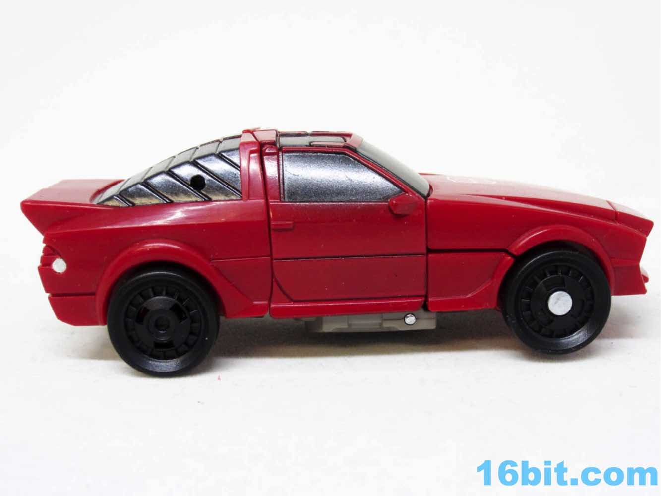 The resulting car is both great and weird. A not-quite Pontiac Firebird Trans Am comes in to focus with spinning wheels, plus a spiffy Autobot symbol. This part, I love. What I don't love is the decision to paint the side windows. The toy is molded in clear plastic, so the decision to paint the windows black is a head-scratcher. It doesn't roll particularly well, but at least we got a decent looking little red toy car with seating capacity for one Titan Master or Prime Master inside.