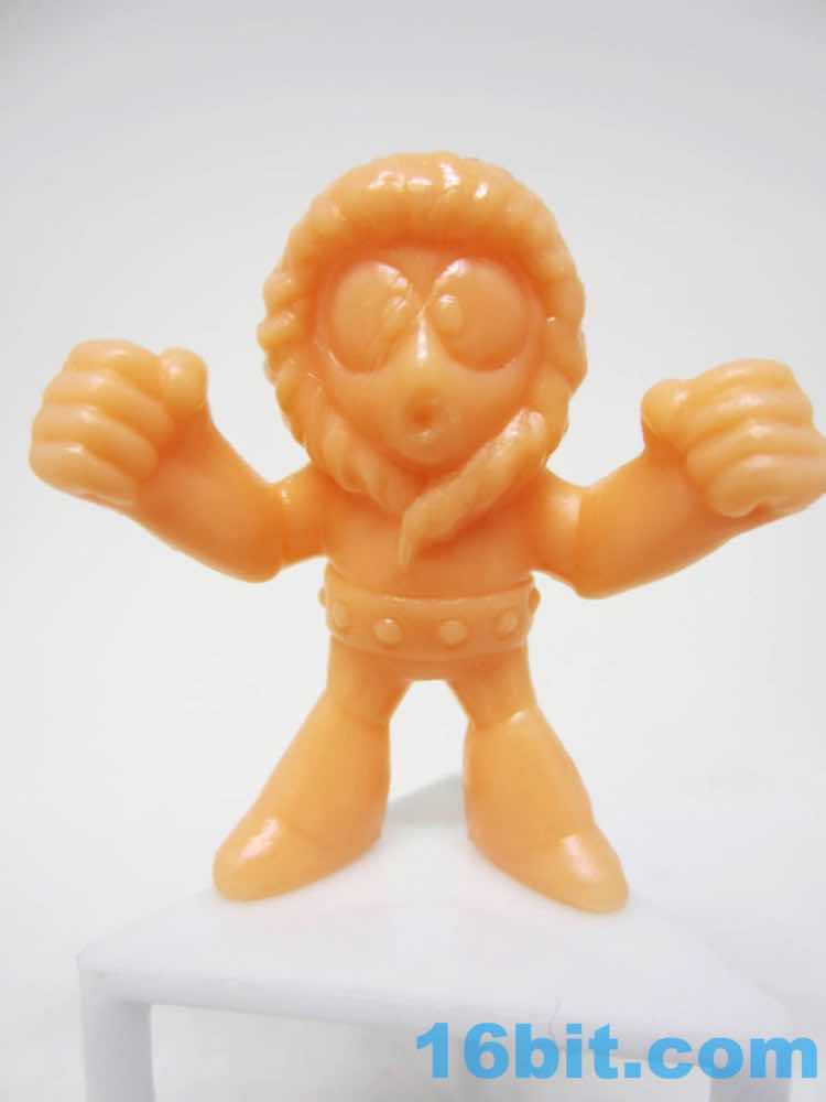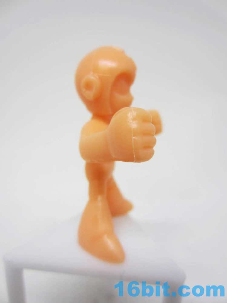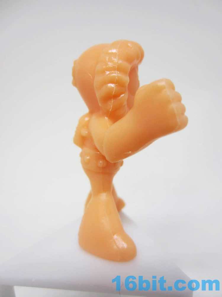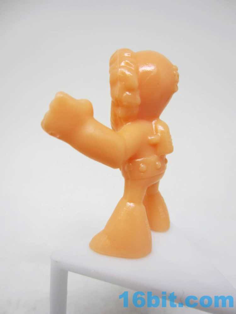 Unlike the other incarnation, Mega Man is about as bare bones as he gets. Neither hand has his Mega Buster, so this is a cartoony two-fisted take on the blue bomber. His pose is similar to that of some standard M.U.S.C.L.E. fare, with fists up slightly and stubby legs straight. Thanks to the translucent nature of this particular plastic, his details are kind of hard to see. There are big eyes, and the parts where his gloves end and the arm starts are kind of hard to separate. The typical helmet designs are here - the crest, the ears - and the hands and feet are enlarged as they should be. I would've loved to see this figure in a slightly more opaque plastic like the original tiny pink wrestlers.