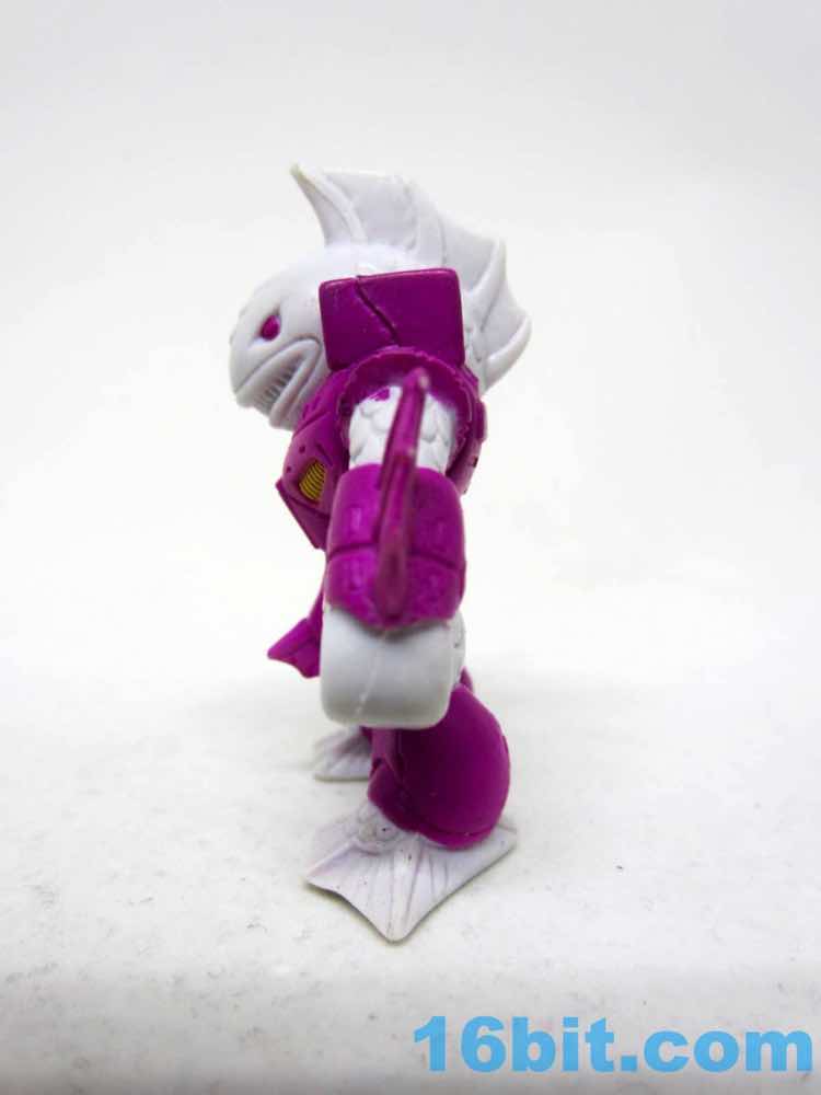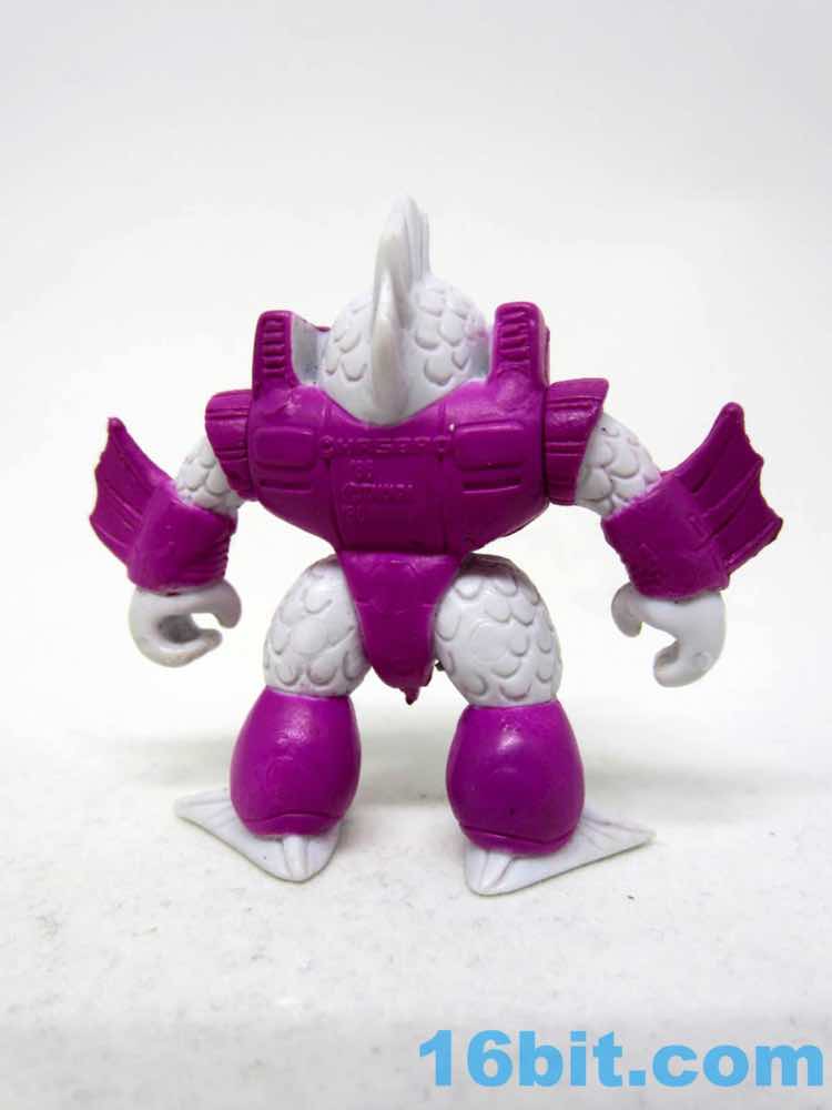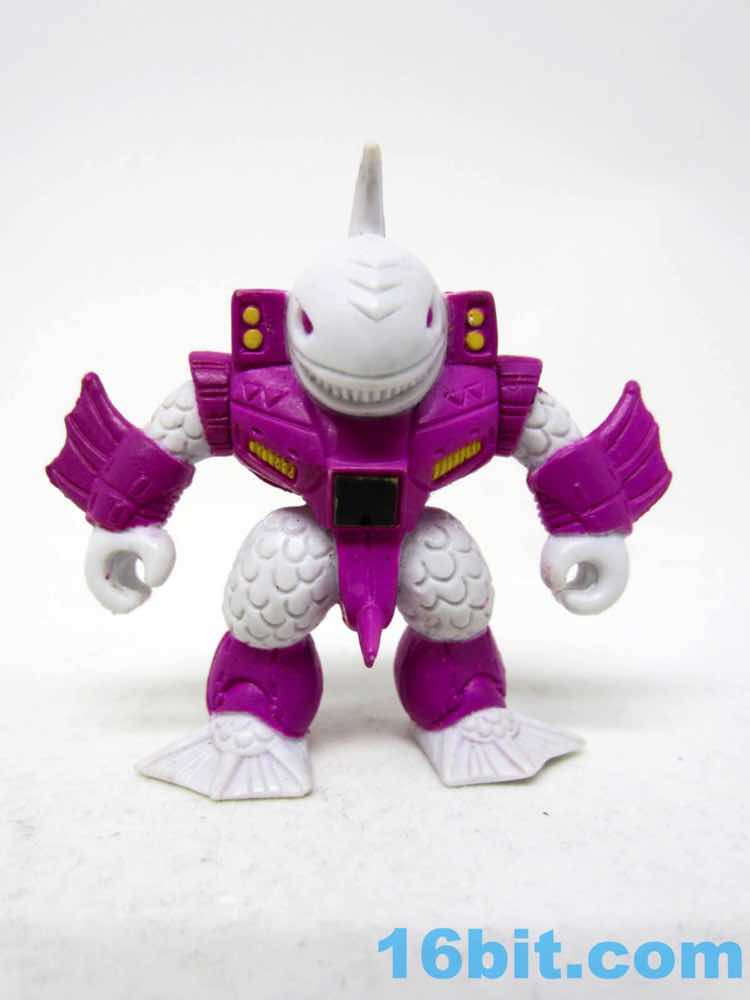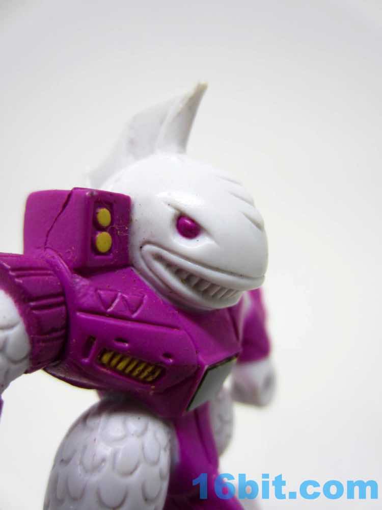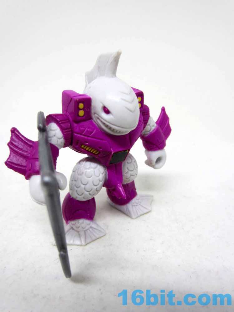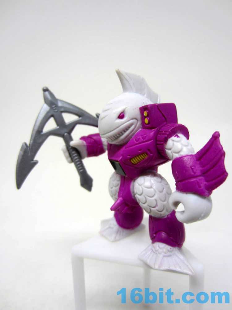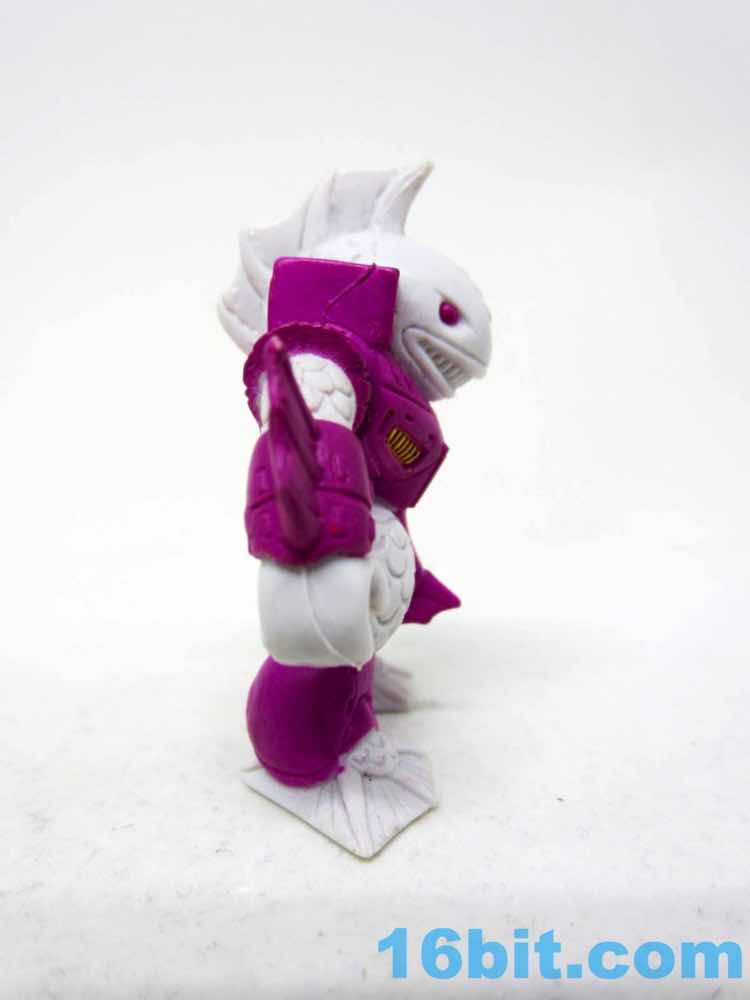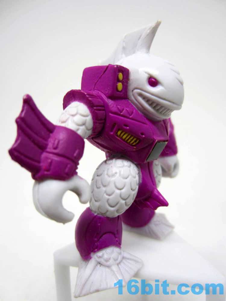 The off-white or light grey plastic looks good, even 31 years later. This is a rubbery but crisp figure, with fairly clean paint lines given the low-rent nature of the figure and how there's a lot of molt and oily residue on some toys from this era. Yellow accents on the vents and lights of a purple-armored fish man give it a distinctive look, with red eyes and a square black rubsign over his body. It's not complicated, but it's clean and weirdly perfect.