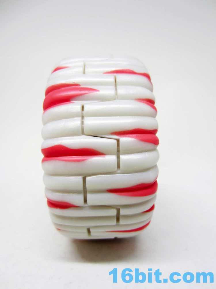 Dead End's ammonite mode doesn't do much, but it's an ammonite. I don't see a lot of toy ammonites, and the sushi-esque coloring on the head just pushed my buttons. The toy is two big shells - one of which can launch via spring - over a folded-up spindly "Basic"-sized 4-inch robot. The outer shell looks more or less like an organic creature, but there are cracks in the facade revealing the robot inside. Two of the tentacles peer out from the blaster mounted under the mouth, and there's a pretty decent face with green eyes and gold teeth. It doesn't look like many other toys. If you pop the shell open, it's filled with mechanical detailing - vents, panels, buttons, and grates hint at the machinery needed to power the illusion of a living, breathing extinct sea creature.