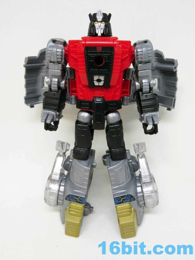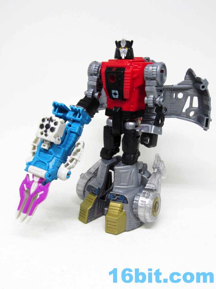 I'm a little disappointed Sludge has no tributes to his original weapons - no red sword, a different black blaster, and no rocket launcher. I'm sure fans are already able to 3-D print one, and with any luck Hasbro will consider offering weapons packs or a new take on Sludge in the future with more G1 accessories. The weapons he does have fit him perfectly, and if you were planning to keep him combined as Volcanicus anyway it's not like you have reason to care one way or the other.