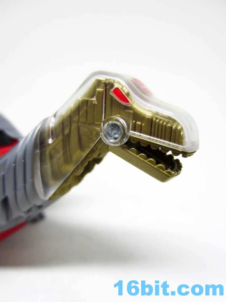 Transformation is fairly simple, with everything folding in more easily than on Slug to give you another bubbly robot dinosaur. The figure loses any ankle articulation, but still has an opening jaw and adds a new neck joint. It's not bad - the original toy had a head that could move up and down, and while this one doesn't it doesn't feel like much of a loss. I love the added paint on the eyes, and it would have been nice to keep the silver legs of the original rather than clear legs with silver and gold painted innards. With the gold bits, it works - with the silver, I am not a fan. The tail also does this silver-in-clear gimmick, which lacks the magic of vac-metal silver.