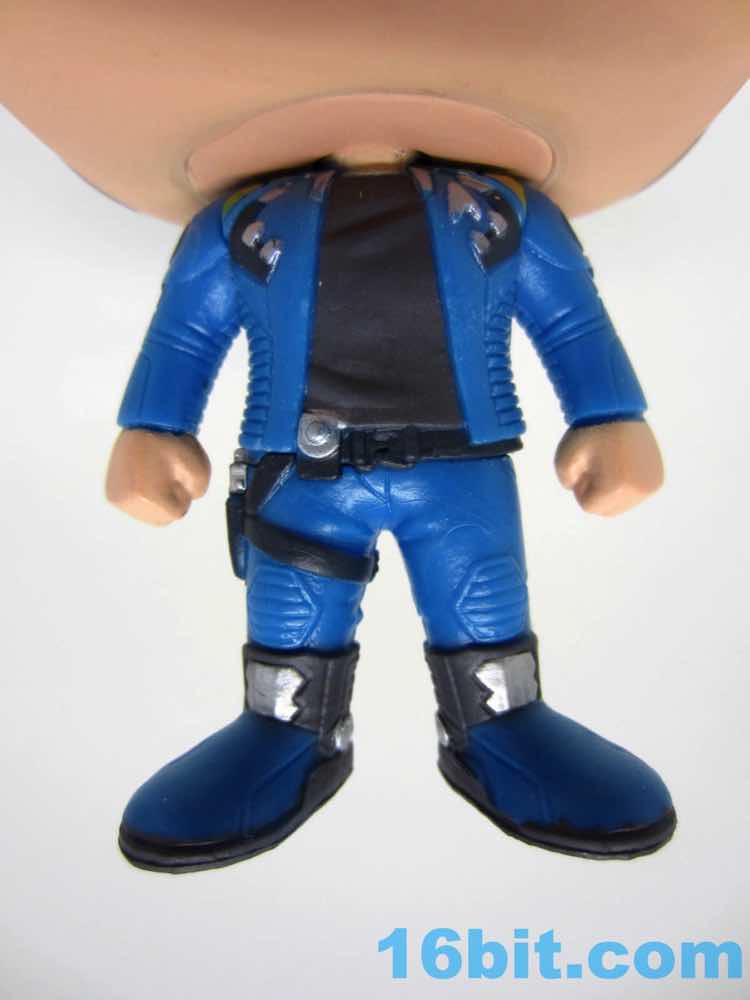 The 3 3/4-inch figure stands freely and comes unarmed, but has that slick survival suit. There's a lot of sculpted detail and some decent painted bits, also some slop, but it's a nifty figure overall. The delta shields on the jacket are most welcome, as are sculpted straps and padding. You can see a phaser in his holster, plus fists of fury for punching or grabbing on to a motorcycle for some reason.