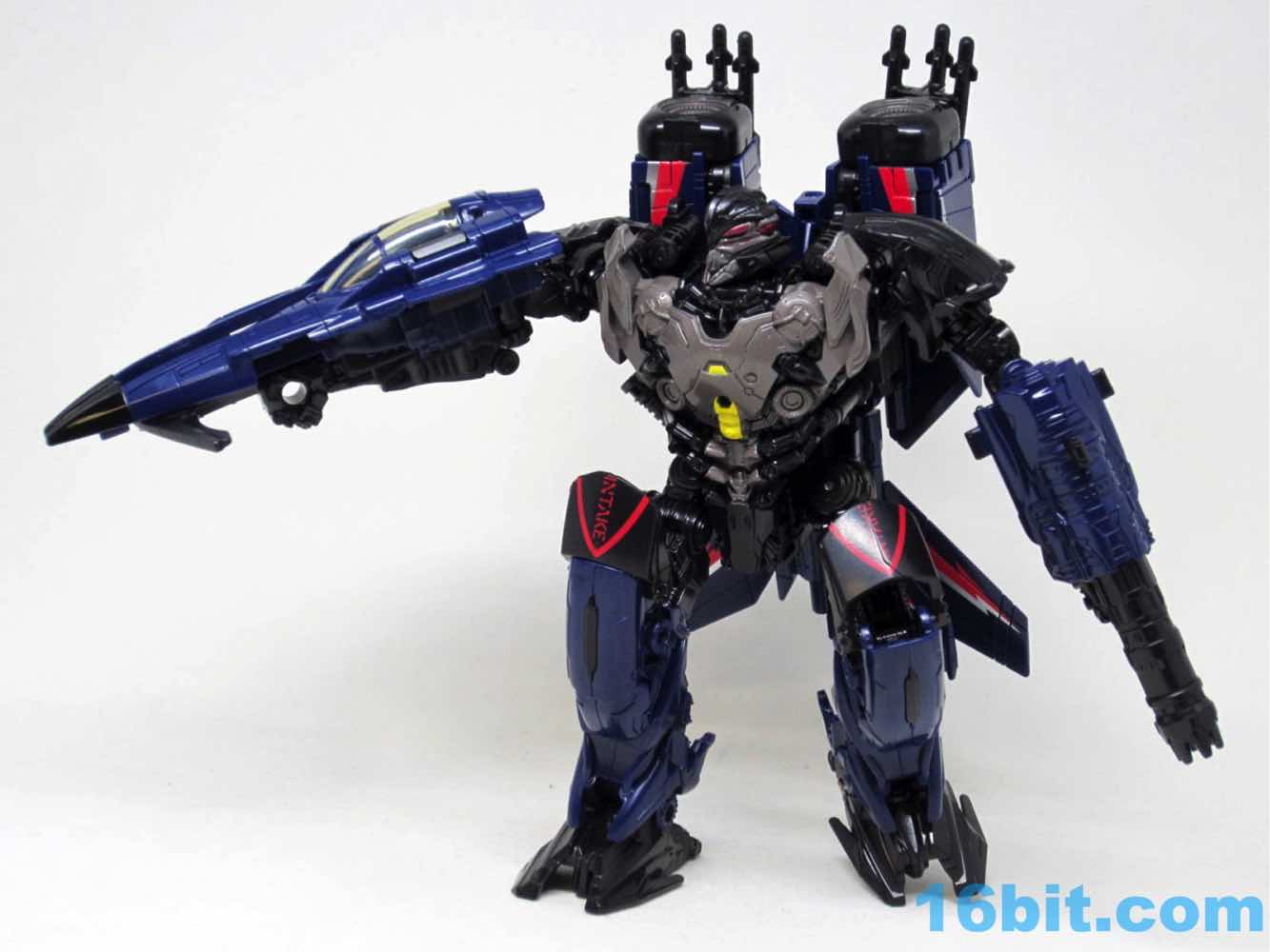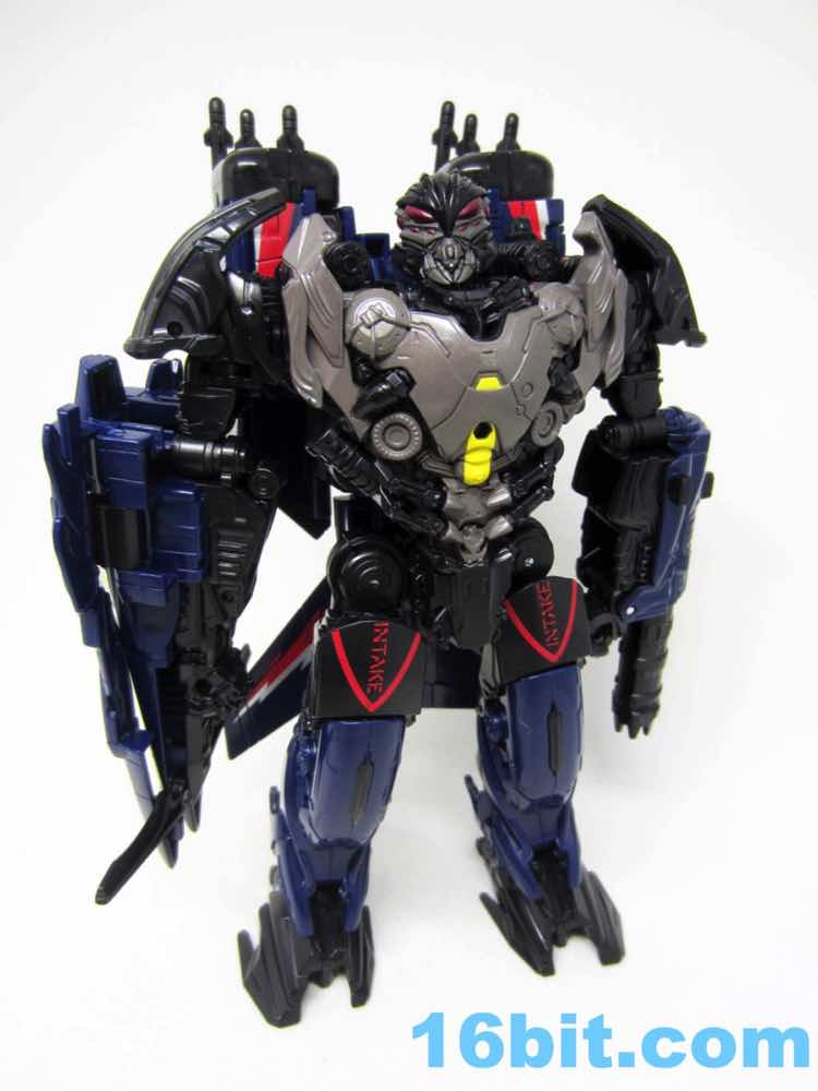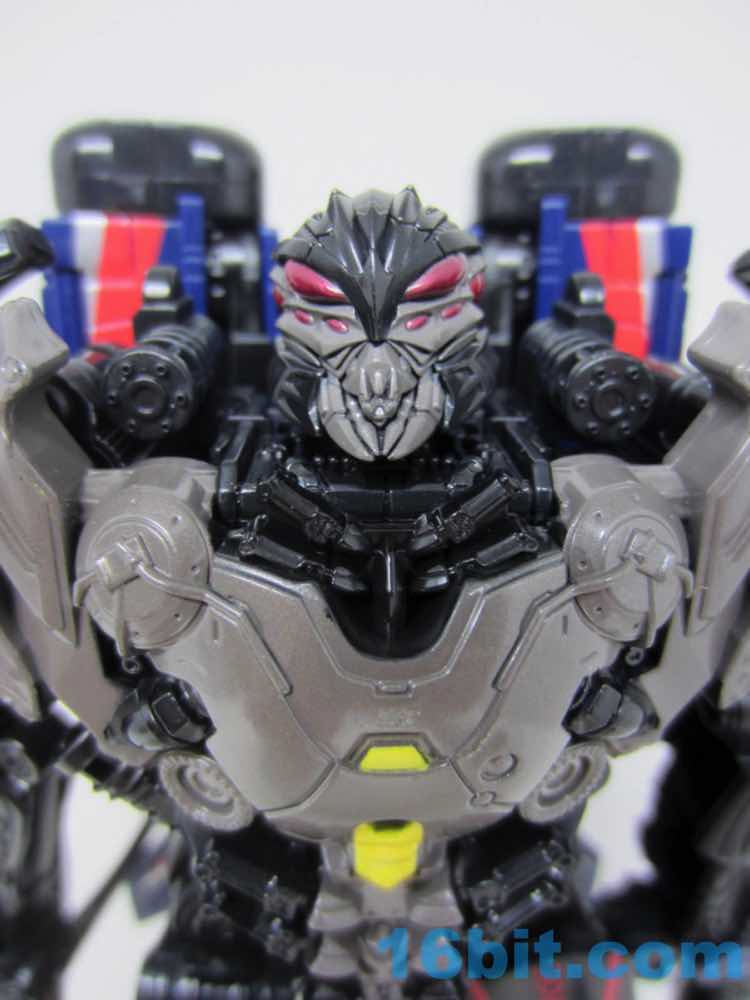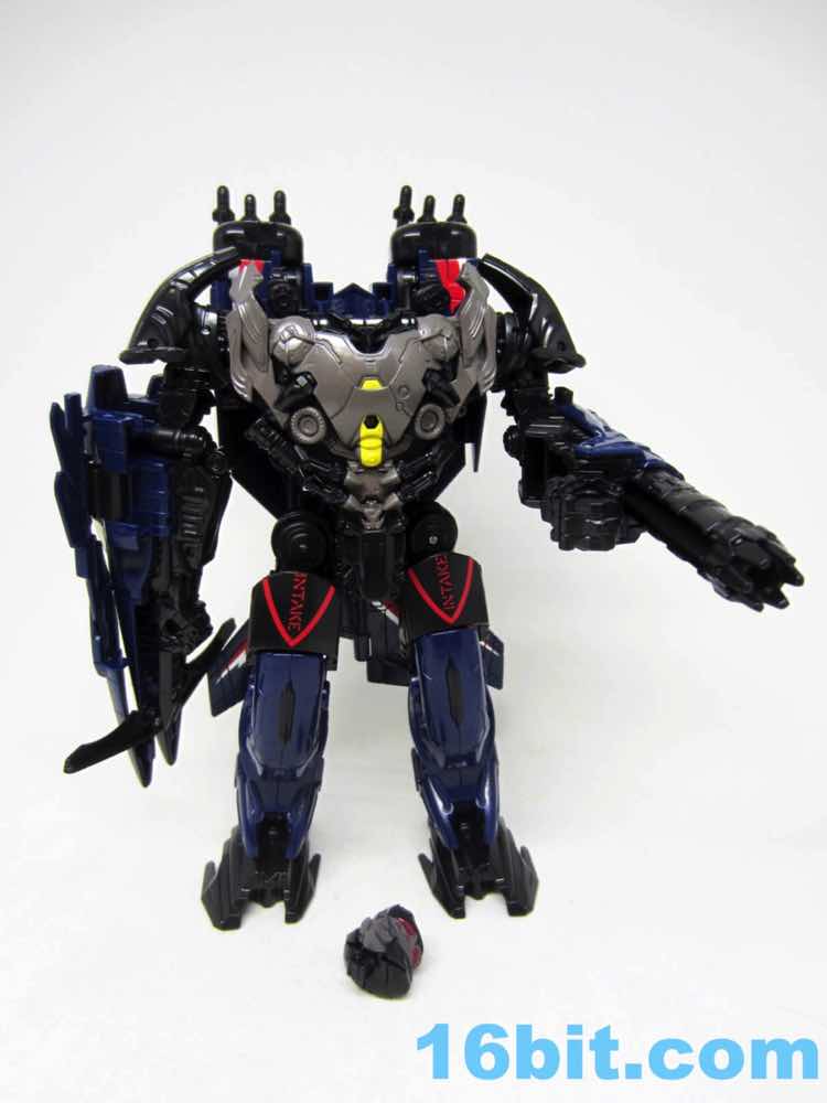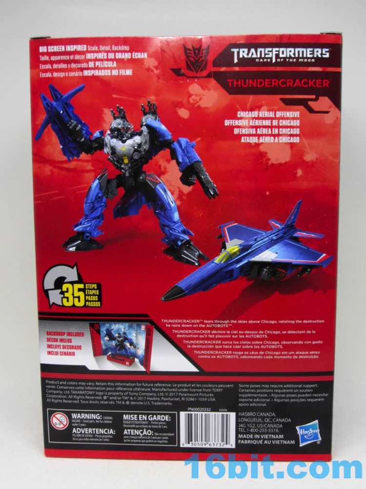 I found Thundercracker on a stroke of luck a few weeks ago - I might have been the second US sighting. The toy is Decepticon Nitro [FOTD #1,835] in new colors with a new head that resembles the Dark of the Moon Thundercracker... which is basically a movie Starscream head. Despite the character appearing in the Dark of the Moon line, to my knowledge, he's never appeared in a movie. Making him a numbered part of Hasbro's collector-centric Studio Series line was a surprise, especially as the obsessive collectoratti tend to get agitated if their numbered set has a gap in it, and if a toy deviates from the line's MO. In this case, the Studio Series was meant to be on-sale in April as a movie-accurate line using the CAD data from the movie effects shots as a reference to make the closest-to-the-movie toys possible given the price points and technology of the day. Thundercracker is basically "Expanded Universe" here.