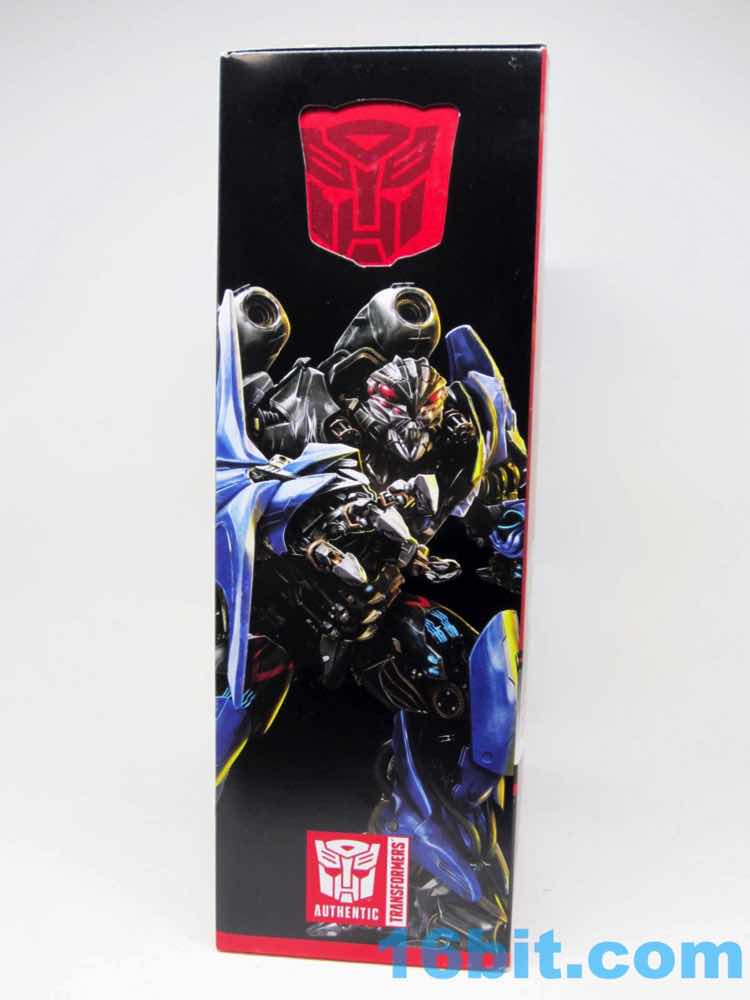 The packaging is worth noting. The Voyager-size box is smaller than current Generations and The Last Knight offerings, but only barely. The intent was for it to be a unified line, so both Hasbro and Takara-Tomy logos appear on the packaging. I assume a sticker will go on the bottom, which is largely devoid of copy. There's a die-cut in the side so you can see a window showing an Autobot logo on the diorama, why I don't know. There are absolutely no co-sells of any kind, although the numbering implies that this is a part of a greater collection. Not showing them to potential customers seems like a mistake, but what do I know? Despite having four languages of text on the box, it's clean and generally looks more attractive than recent movies.