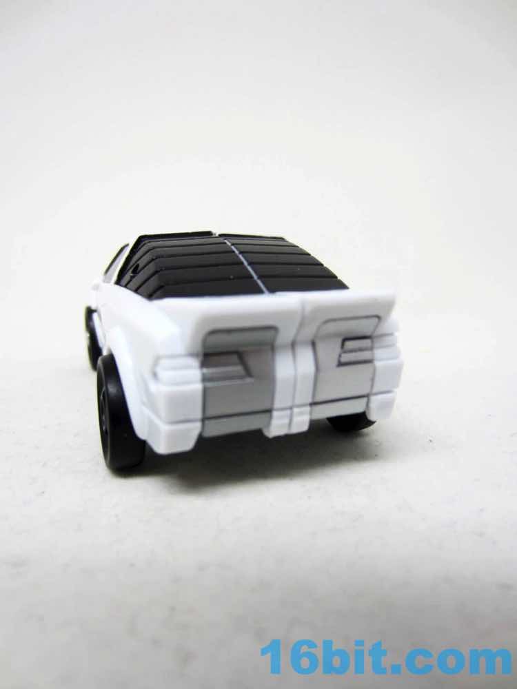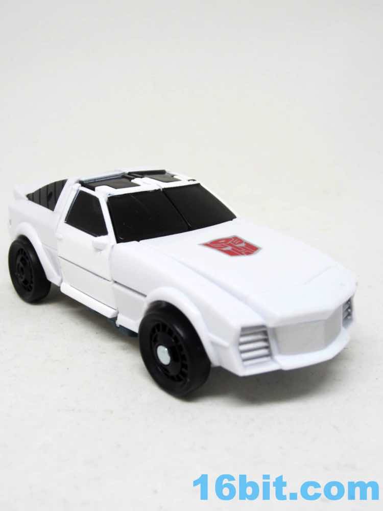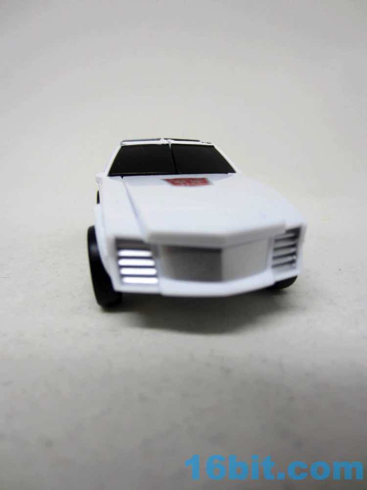 The resulting car is a white sporty little thing with a big silvery Autobot symbol on it. The wheels roll adequately, and mine has a paint scrape on it. Again, this isn't the kind of thing you can tell until you open it. Other than this, it's perfectly good - just like a white Windcharger. It doesn't do much of anything, but that's typical. You can pop it open and sit a Prime Master or Titan Master inside if you like.